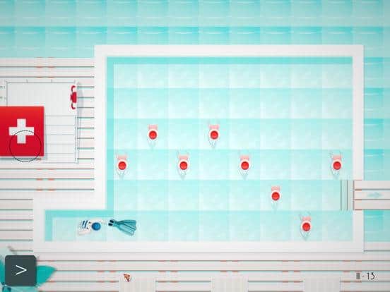 Swim Out – отличная головоломка для IOS, в которой вы будете устраивать заплывы в бассейне. В этой игре вы будете выступать в роли пловчихи, которой предстоит преодолеть все преграды на пути и добраться до параллельного выхода. Тщательно просчитывайте каждый свой ход и старайтесь за меньшее количество ходов пройти уровень. Пройдите все 100 уровней игры, на протяжении которых вы встретите 12 видов пловцов, которые имеют различные элементы для плаванья. Обходите стороной медузы, крабов и волны. Играйте в эту игру и получайте удовольствие от отличной графики.