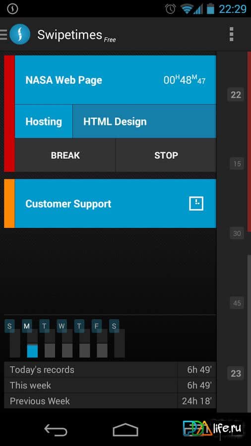 Swipetimes pro time tracker – замечательное приложение для деловых людей на андроид, с помощью которого можно вести учет времени. Swipetimes pro time tracker, является инновационным приложением с интуитивно понятным интерфейсом, которое позволяет проводить ряд следующих возможностей: определить проекты и задачи, проводить учет времени работы с помощью секундомера, просмотреть статистику в диаграмме, делать экспорт сохраненных записей в Excel, CSV или XML, а так же многое другое.