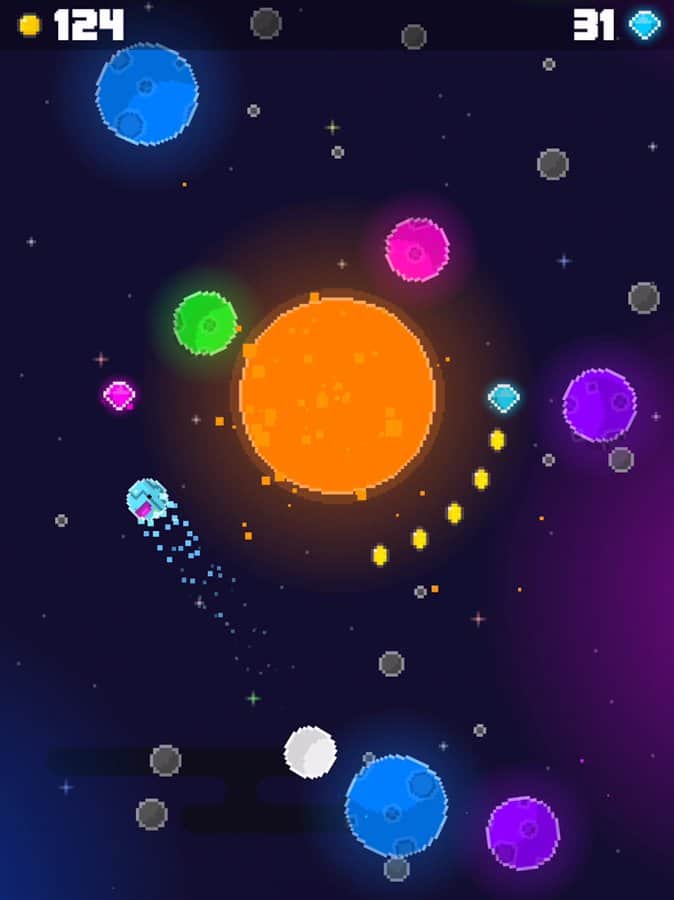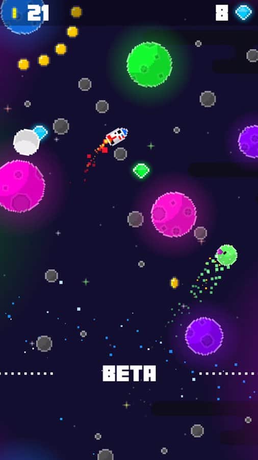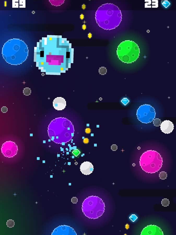 Swoopy Space – проведите забавного персонажа по бескрайним космическим просторам в этой игре на андроид. Прикасайтесь к экрану своего девайса в нужный момент и направляйте тем самым своего героя по многочисленным уровням, при этом собирая драгоценные камни и бонусы. Внимательно и осторожно прокладывайте себе маршрут в пространстве и опасайтесь встречи с астероидами, черными дырами, летучими мышами, огромными пауками и призраками. Набирайте достаточное количество очков и открывайте для себя 27 забавных персонажей и 24 неповторимых уровня. Играйте в эту игру и наслаждайтесь простым управлением и двумя режимами игры.