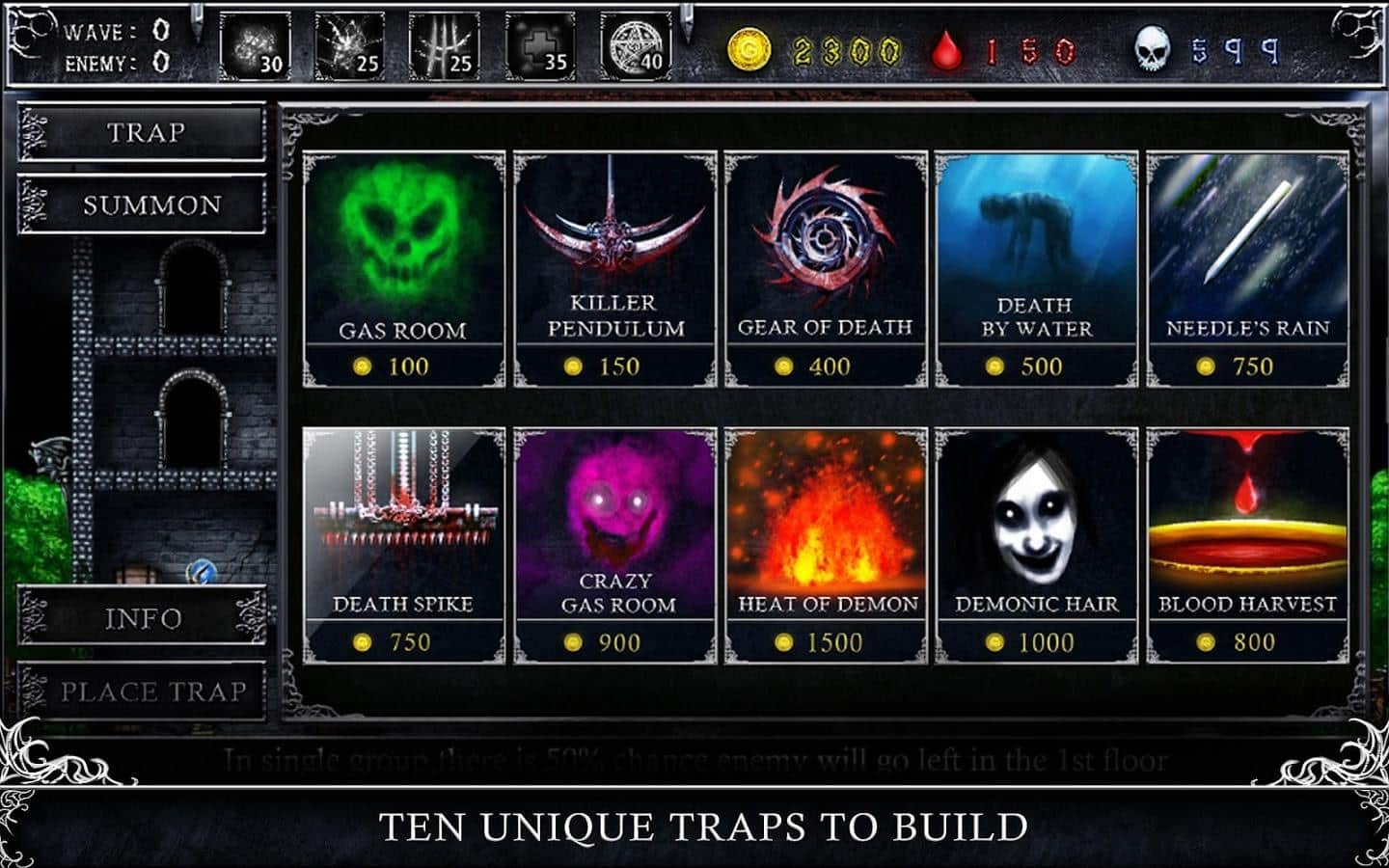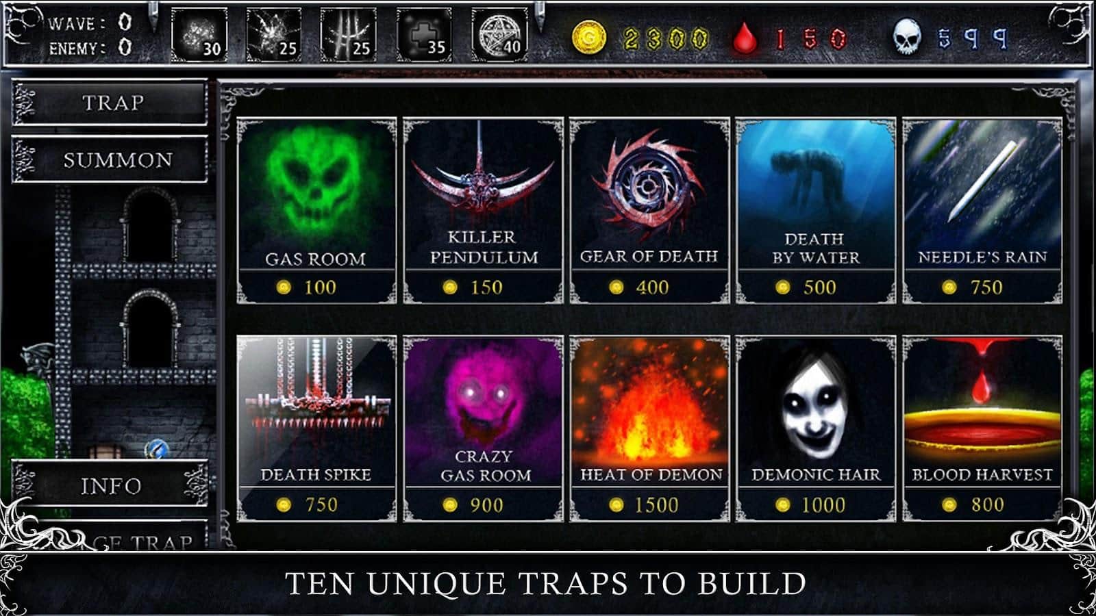 Sybil: Castle of Death – замок смерти ждёт вас. Ира представляет собой популярный жанр «tower defense» с своей уникальной формулой, которая даёт игре необычайно увлекательный геймплей. Каждая волна врагов имеет свою историю. Враги будут пытаться добраться в самое дальнее помещение в замке, где находится гроб Сибил. Вы должны уничтожить всех врагов на подступах к ритуальному залу. Стройте башни, вызывайте монcтра-защитника, устанавливайте различные ловушки и делайте всё возможное для защиты заветного помещения. Вы одержите победу, если уничтожите всех врагов.