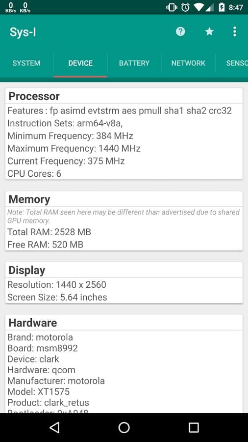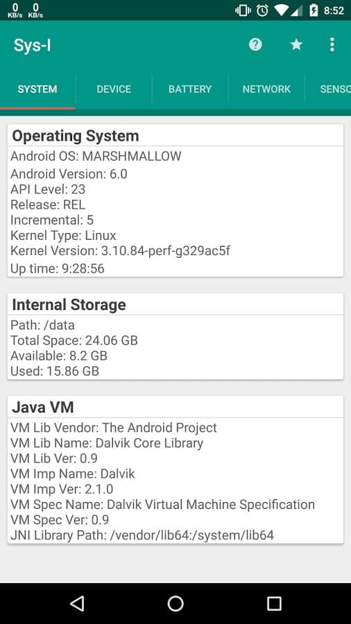 Sys-I (Android System Info) - Соберите максимум информации о своем смартфоне с помощью всего одного простого приложения. В первую очередь это приложение пригодится тем кто хочет знать о своем устройстве больше, или же просто не знает подходят ли его требования для определенных игр. Запустив приложение первый раз, оно соберет всю доступную информацию, отсортирует её по удобным категориям и группам. Таким образом вы сможете всегда получить доступ к информации о своем устройстве.