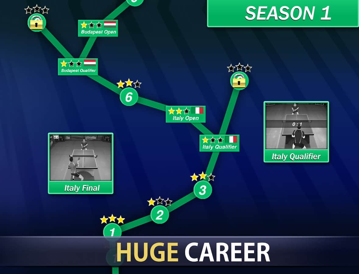 Table Tennis Champion – участвуйте в международном турнире по настольному теннису, в этой игре на андроид. Выбирайте себе теннисиста из различных страна и сделайте его уникальным, выбрав ему пол, внешний вид и спортивную форму. Играйте в различные мини-игры, тем самым тренируя своего теннисиста перед турниром. Бросьте вызов сильнейшим игрокам в этой игре и управляйте своим теннисистом с помощью одного пальца. Поднимайтесь вверх по карьерной лестнице, выигрывая дружественные матчи, тем самым улучшая показатели и параметры своего героя. Приобретайте новое снаряжение для настольного тенниса и победите в главном турнире года, пройдя более 50 этапов игры.