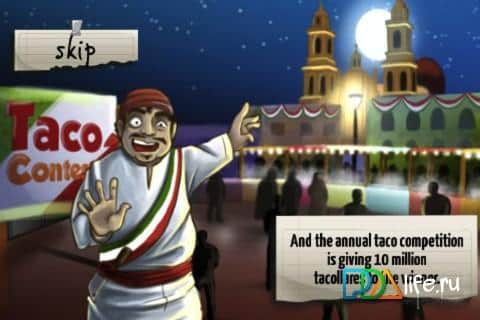 Taco Master - игра на symbian, в которой вы будете поваром. Вы думаете что так легко стать поваром, как бы не так, вам нужно не только вкусно но и быстро накормить посетителей. Принимайте заказы на тако и делайте их, но следите за последовательностью ингредиентов которые вы добавляете. Вы должны готовить тако из различных продуктов на ваш выбор- это может быть пряные колбасы, сыры или острый перец Чили.