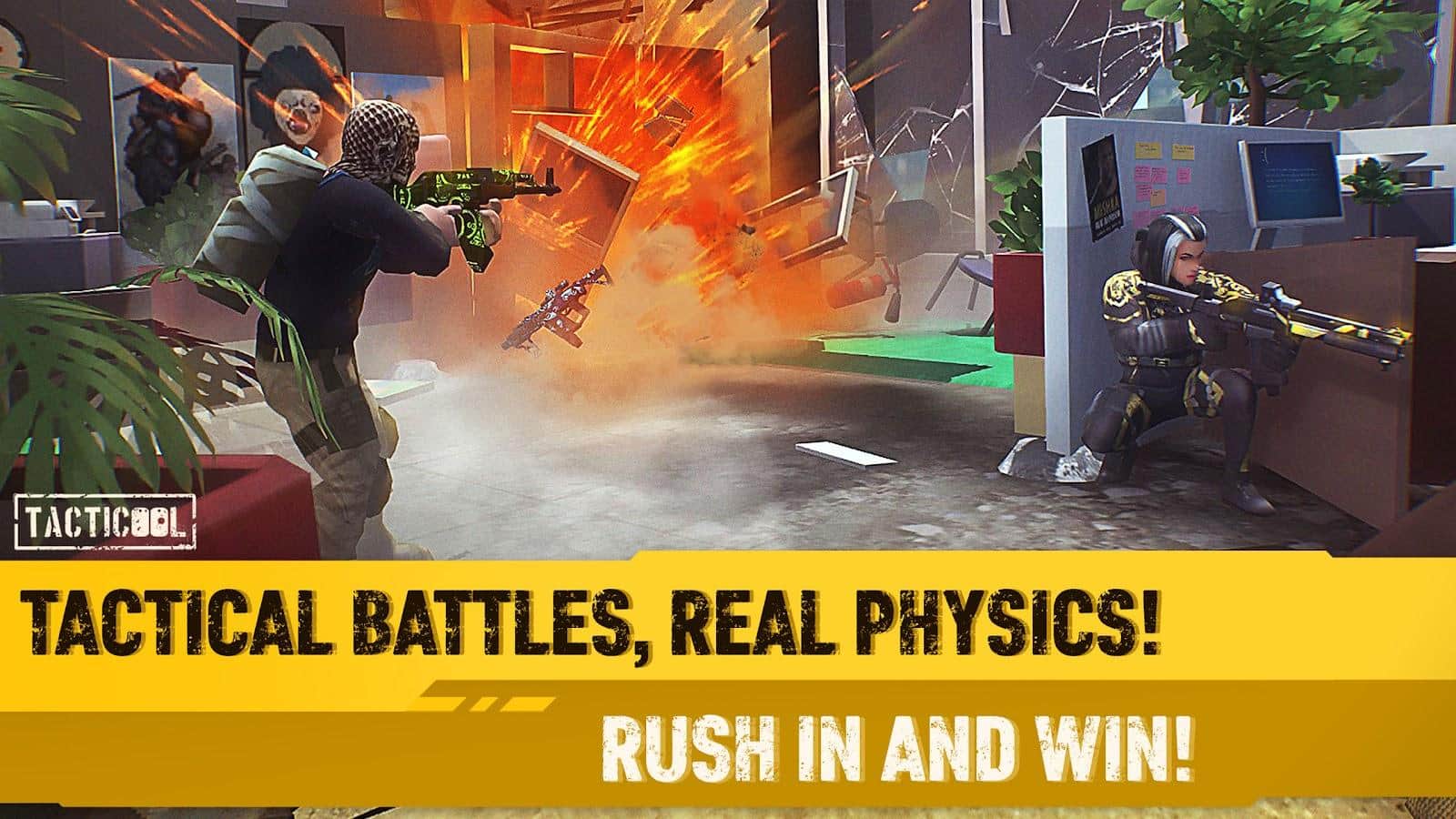 Tacticool – многопользовательский онлайн шутер на андроид, где вы примите участие в коротких и динамичных матчах. Возьмите под свой контроль сильную команду и приведите их к победе. В этой игре вам необходимо пройти полосу препятствий с многочисленными трубами, заборами и досками которые в любую секунду могут вас убить. Уничтожайте врагов давя их машинами, подрывая на минах и расстреливая в упор. Разрушайте и подрывайте все на своем пути в том числе свою машину и даже себя. Бросайте вызов другим игрокам в онлайн режиме или набирайтесь опыта в оффлайн. Вас ждут 40 видов оружия, разнообразные скины и костюмы.