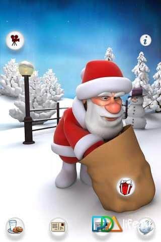 Приложение Talking Santa Free для андроид весело поздравит Вас с праздником. Снимайте видео и поделитесь с друзьями. Не забывайте кормить его. Есть сюрпризы, такие как отправка новогодних открыток, подарки и кое что еще.