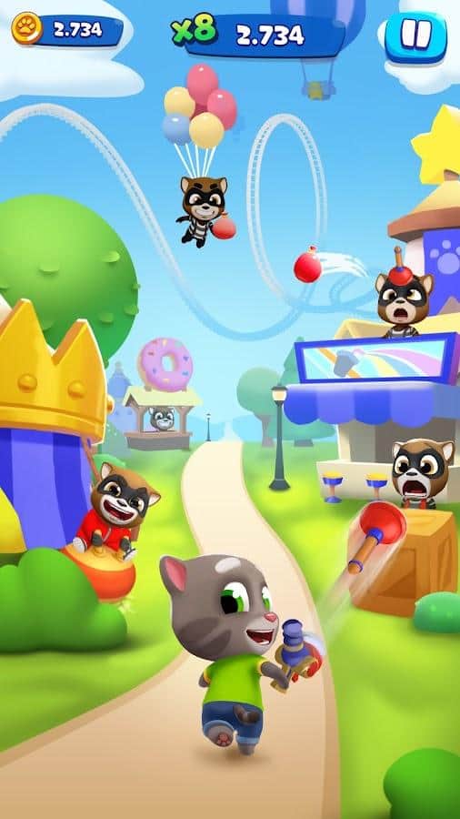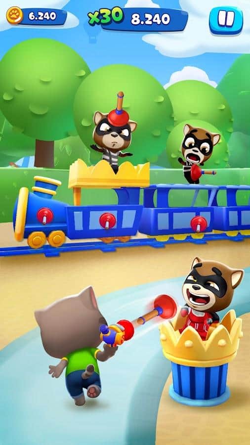 Незамысловатая игра про Тома, представляющая собой некий тир с авто-бегом. Вам всего-то нужно вовремя кликать на экран и отстреливать енотов и прочее. За внутриигровую валюту доступны бластеры и персонажи, которых кстати очень мало. Графика слишком упрощённая и яркая, не то чтобы плохая, но от неё глаза устают.