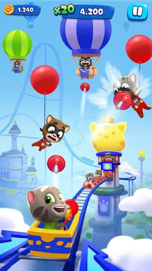 Talking Tom Blast Park - Ракунзы затеяли полностью разрушить планы Говорящего Тома и его друзей, и во время устраивания грохота в тематическом парке, они воруют вознаграждения участников, съедают все доступные закуски, захватывают различные аттракционы и вытворяют плохие вещи, мешая другим. Том, Анжела, Бен, Хэнк, Джинджер и Бекка объединяют свои усилия, чтобы выгнать их из парка и восстановить все то, что они разрушили. Не бойтесь того, что эти негодяи начали стрелять по вам, лучше приспособьтесь к любым испытаниям, которые вас ожидают.