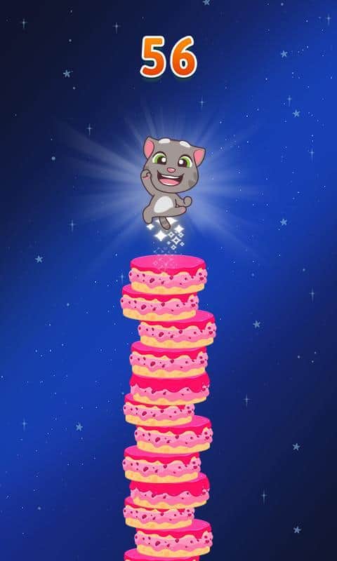 Говорящий Том - знаменитая франшиза выполненная в жанре симулятор питомца, главным героем которой стал тот самый кот. Конечно же столь завидную популярность игре принес именно главный герой. В новой части серии под названием Talking Tom Cake Jump разработчики решили отойти от привычного направления и выполнили игру в качестве вертикального джампера. Геймплей Говорящий Том: вкусная башня выполнен в классическом для жанра стиле, тапайте на экран и перепрыгивайте по слоям торта как можно выше.