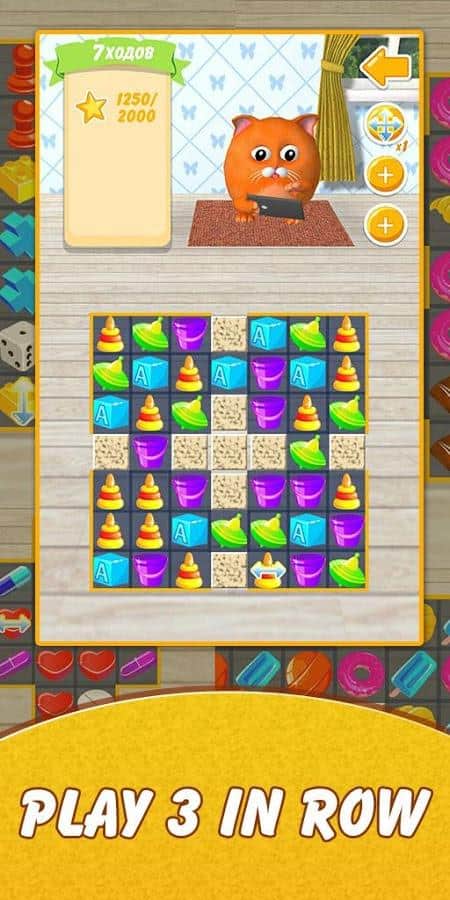 Tamagochi Toma: three in row! – интересная игра на андроид, которая подойдет для детей и взрослых. В этой игре вашей главной задачей будет помогать своему питомцу Тому вырасти, решая для этого различные логические задачки. В этой игре вам предстоит складывать по три и более различных объекта в ряд и помогать коту вырасти. В этой игре вы должны учитывать потребности кота в еде, для этого собирая по полю фигурки с пирожным, мороженым, круассаноми и шоколадом. А если ваш питомиц заболел, то принимайте немедленно различные витамины и таблетки. С каждым новым уровнем сложность игры будет увеличиваться, а время на сборы таблеток или еды уменьшаться. Играйте со своими питомцем и наблюдайте как он растет.