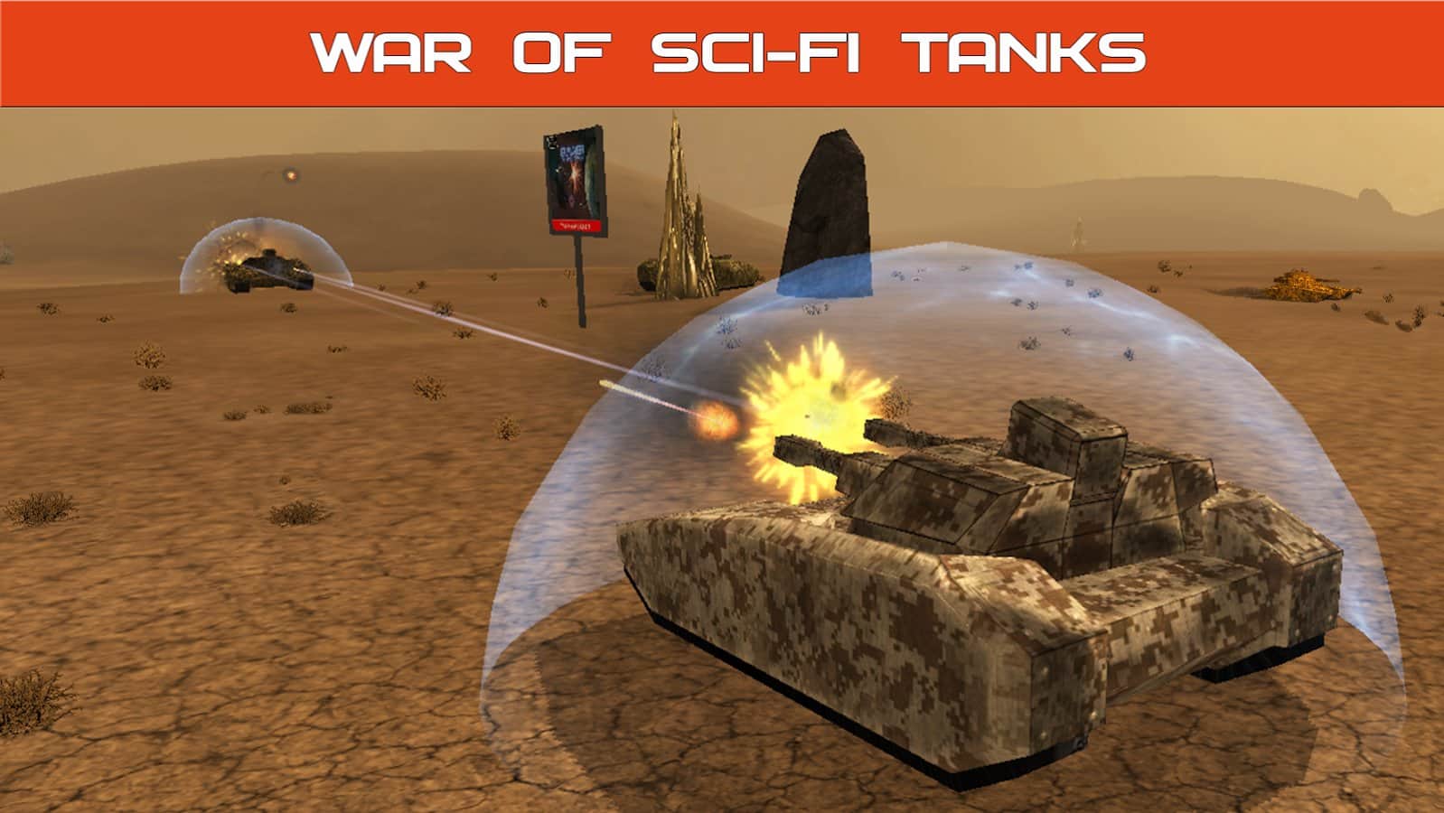 Tank Combat : Future Battles – игра на андроид, которая перенесет вас в далекое будущее, где вы будете сражаться за свои территории. В этой игре вы попадете в фантастический мир далекой планеты, которая раскаляется под огнем многочисленных сражений. Садитесь в свой танк и управляйте огромной и современной машиной, ведя его вперед и уничтожая всех врагов на своем пути. Выполняйте все поставленные миссии и подбейте как можно больше танков противника, побеждая их не числом, а продуманной стратегией. За каждый уничтоженный танк вы будете получать вознаграждение, которое сможете потратить на покупку нового снаряжения для своего танка или приобрети новый более мощный танк.