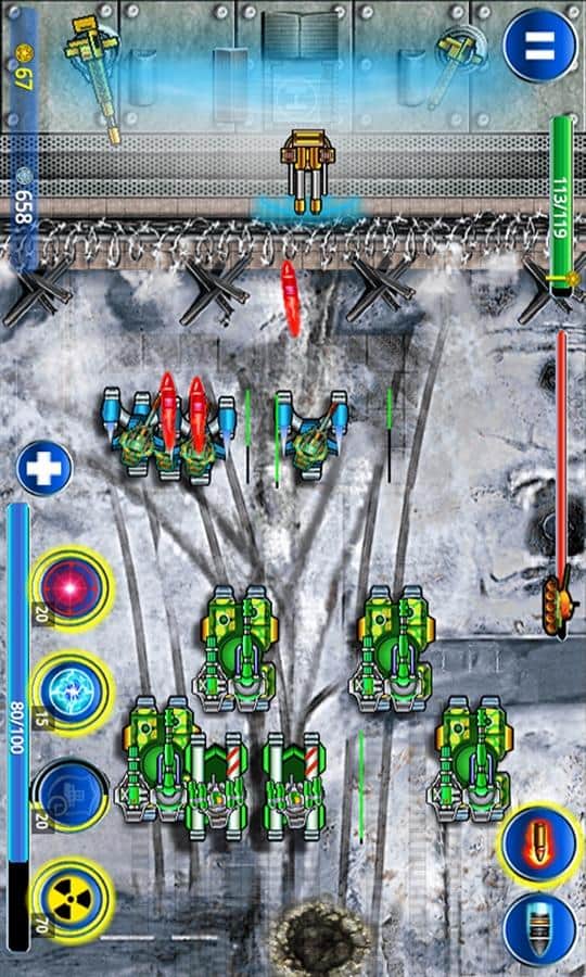 Tank ON - Modern Defender - игра на windows phone, в которой вам предстоит защищать вашу базу. С помощью пушки которая перемещается по базе, вам необходимо уничтожать джипы, танки и вертолеты врага. Также у турели есть защитное силовое поле, которое не дает снарядам противника повредить вашу базу. На ваш выбор специальное оружие это пушки, удар электромагнитной волной, силовое поле и ядерный удар. За каждого уничтоженного врага или прохождение миссии вы будете получать монеты серебренные либо золотые.
