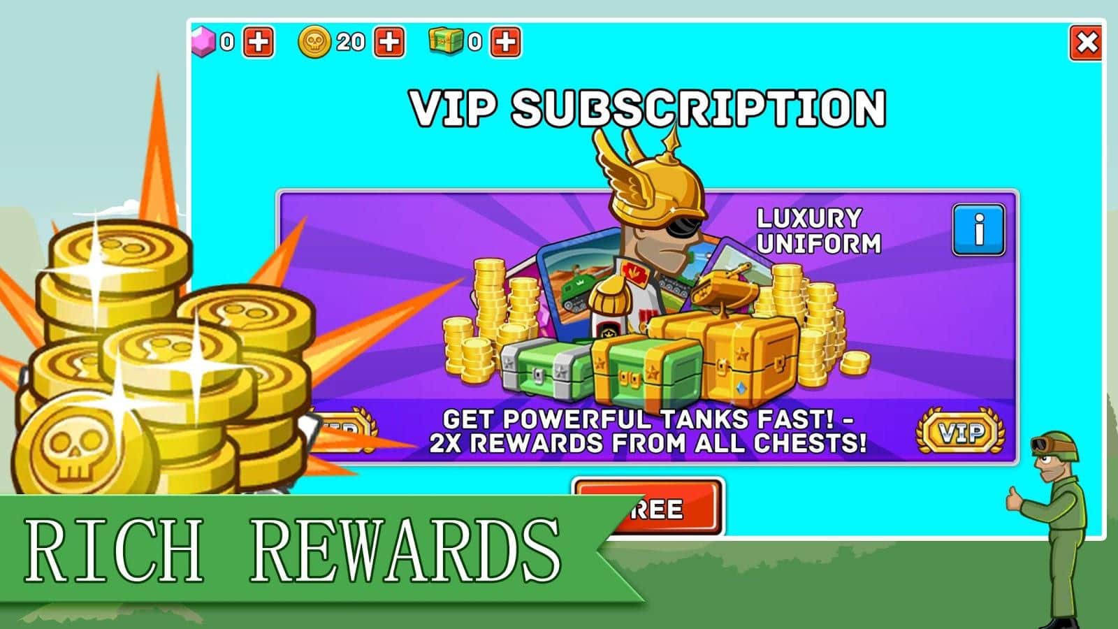Tank Stars II – казуальная игра на андроид, где вы будете уничтожать технику противника. Управляйте танком и выбирайте подходящее оружие, которое уничтожить технику противника. В этой игре вашей главной задачей будет правильно выбрать угол стрельбы чтобы с одного удара уничтожить технику. Управляйте смертельным оружием таким как ракеты и атомные бомбы. Начните играть в эту игру прямо сейчас и проявите свои тактические способности. Станьте самым сильным государством и уничтожьте всех своих соперников.