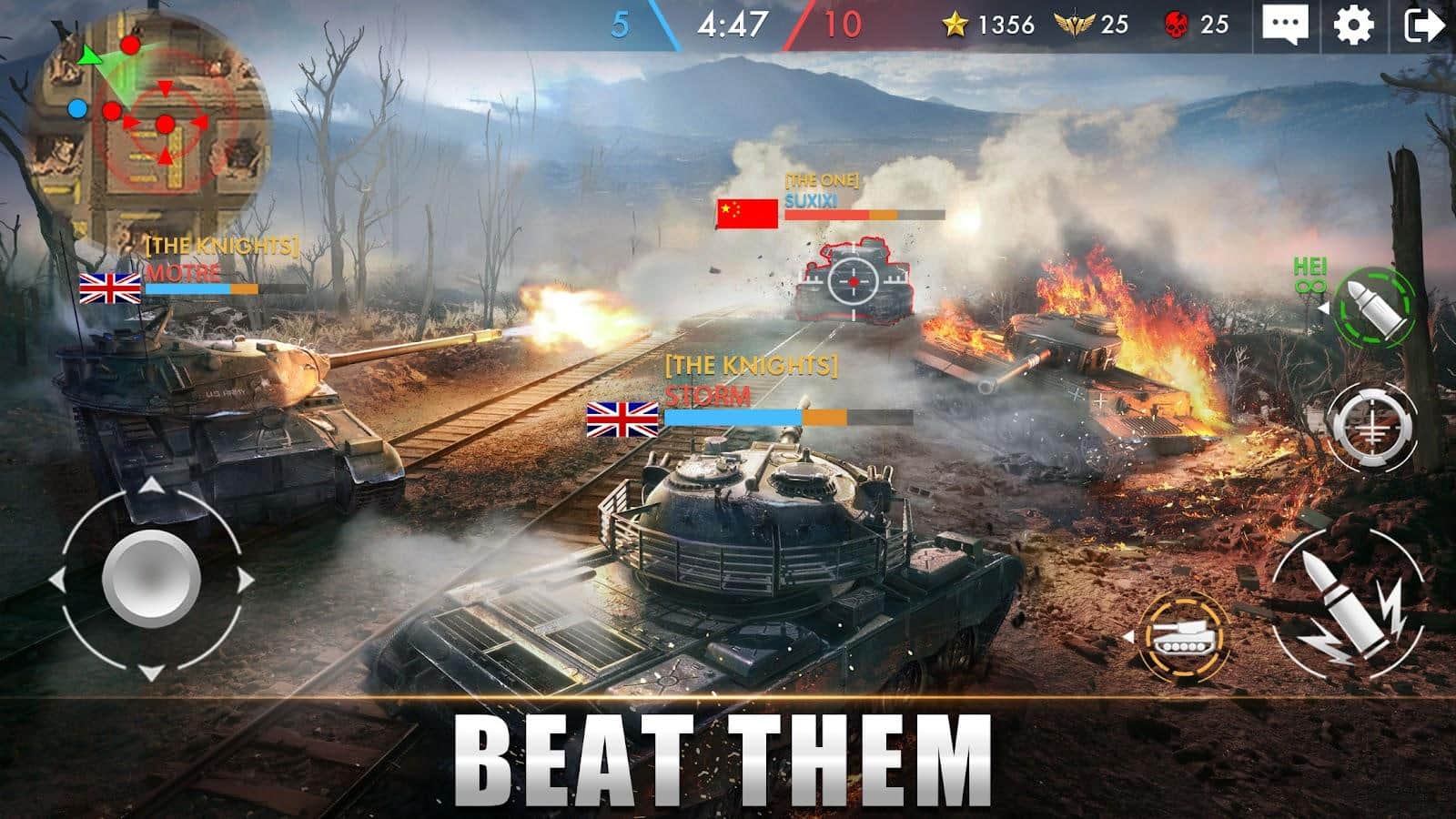 Примите участие в самых эпических сражениях среди танковых стрельбищ. Уничтожайте как можно больше танков противника и зарабатывайте опыт, благодаря которому вы сможете улучшать характеристики своего танка или открывать новые виды танков. Также вы можете добавлять на свои танки различные аксесуары, которые могут изменить исход всей битвы. Захватывающие бои с реальными людьми со всего мира на различных полях для сражений: заснеженные поля, промышленные территории и необитаемые острова с густой зеленкой - выбор остается за вами.