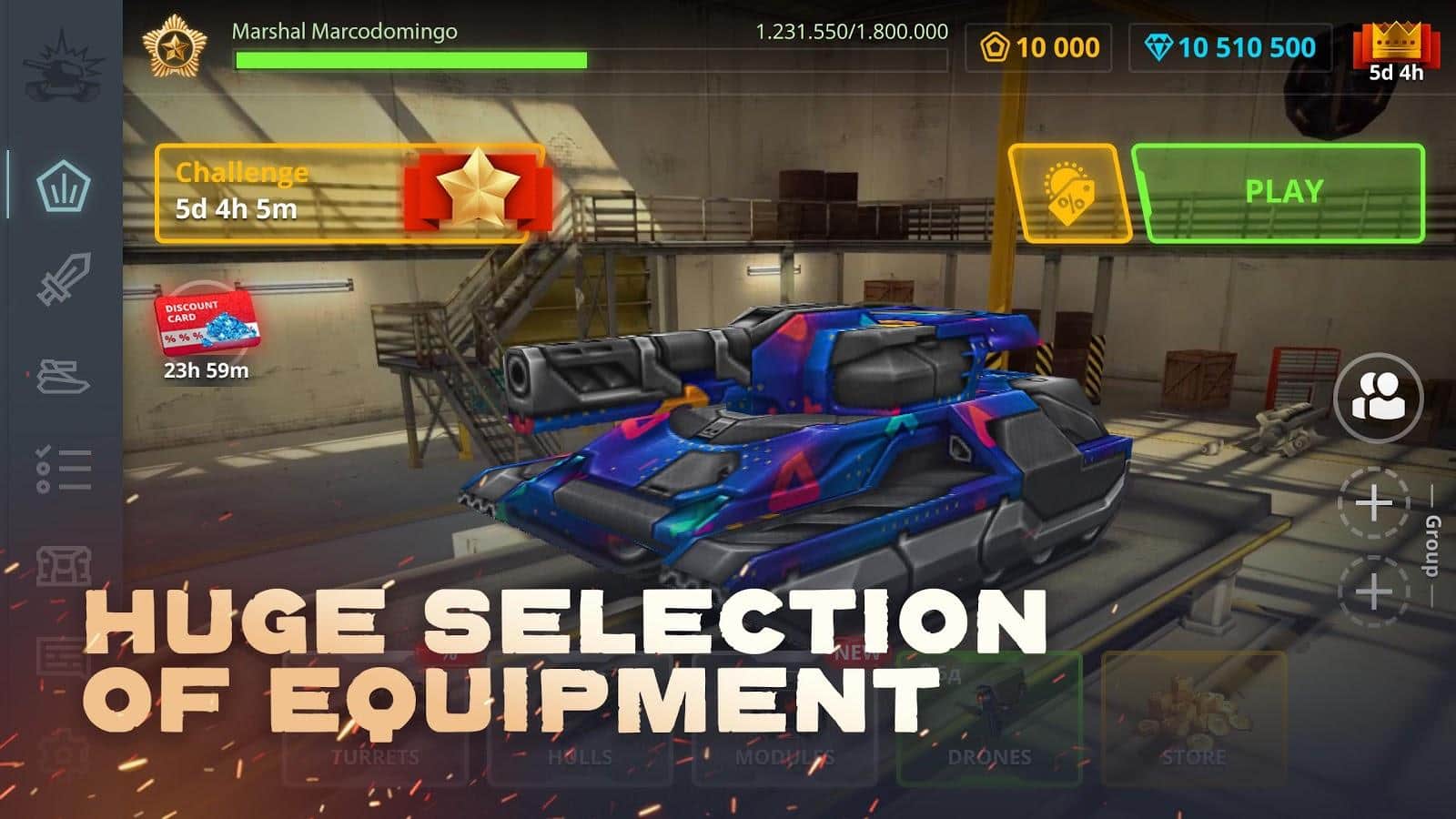 Tanki Online – multiplayer tank action – примите участие в танковых баталиях которые будут проходить на различных картах. Уничтожайте врагов в PVP сражениях с друзьями или в одиночку и победите всех врагов. Используйте против противника различное оружие и броню, а также прибегайте к помощи дронов и усилений что сделает вас более эффективным против соперников. В этой игре на поле одновременно будут играть в командах 8 на 8 или примите участие в одиночной компании. Прокачивайте и улучшайте свой танк по ходу игры добавляя на него различные корпуса, пушки и броню. Пройдите более 30 игровых уровней и исследуйте разнообразные карты.