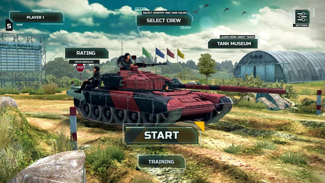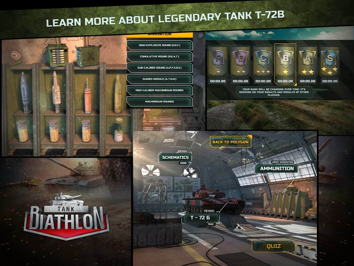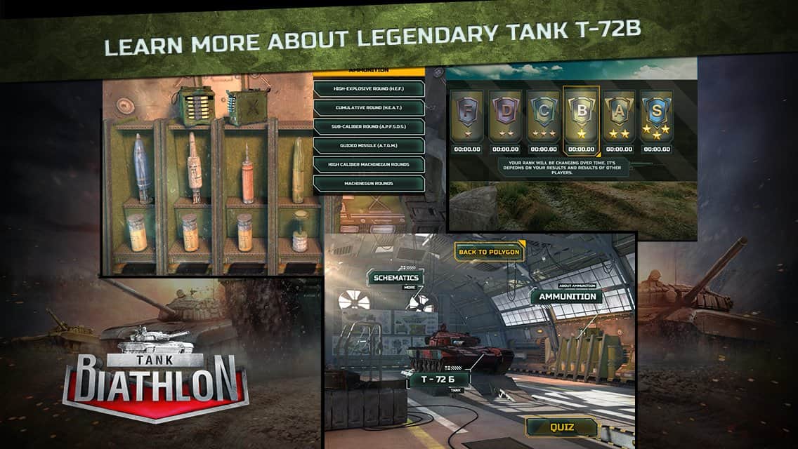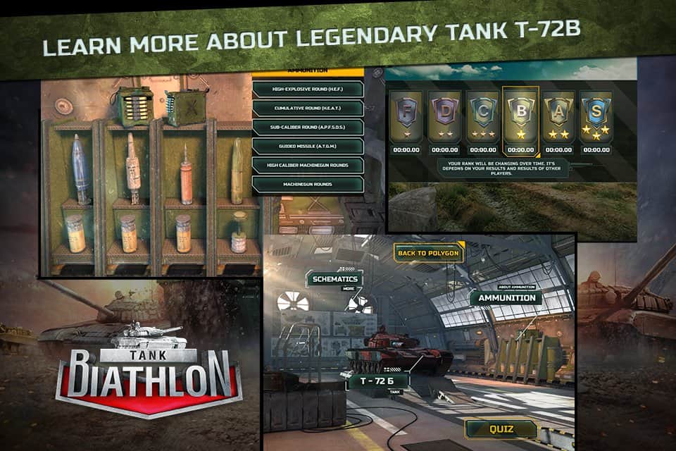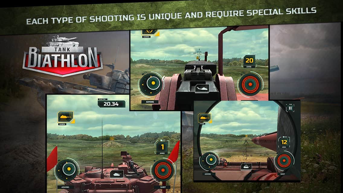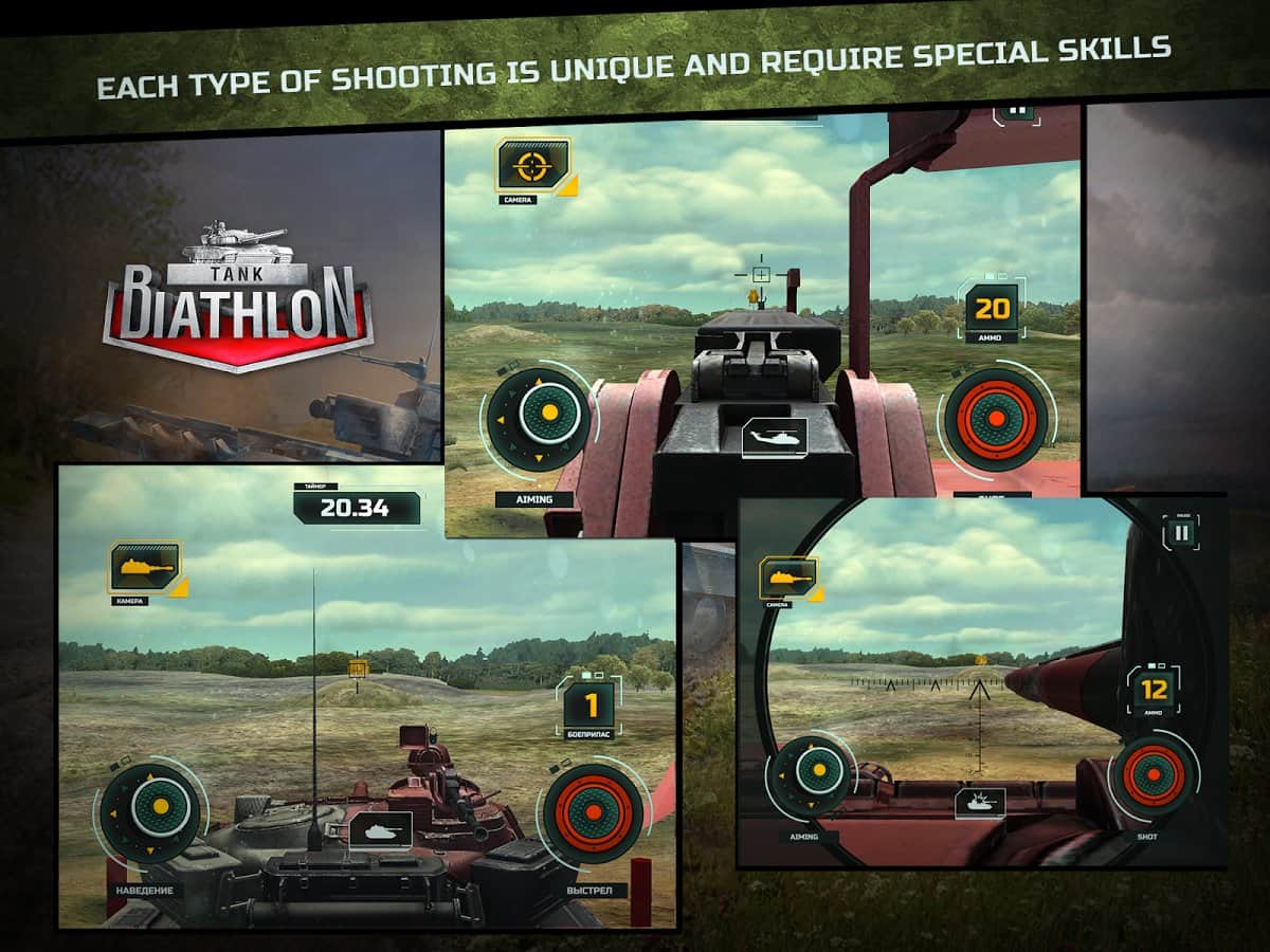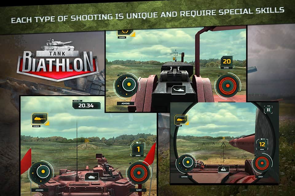 Танковый биатлон - Вашему вниманию представляется Танковый Биатлон на андроид. Теперь и вы сможете поучаствовать в увлекательном шоу. Игра представляет собой бесплатную однопользовательскую игру в стиле экшен, где вы сможете принять участие в различных чемпионатах на танках. Выполняйте различные задания на скорость, ловкость, и прицельной стрельбы. Присоединяйся к игре, оттачивай технику управлением боевой машиной, и приведи свою команду к победе!