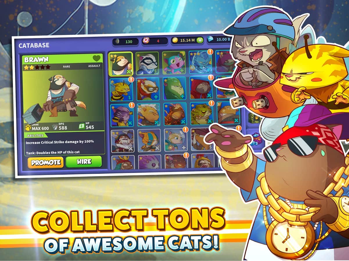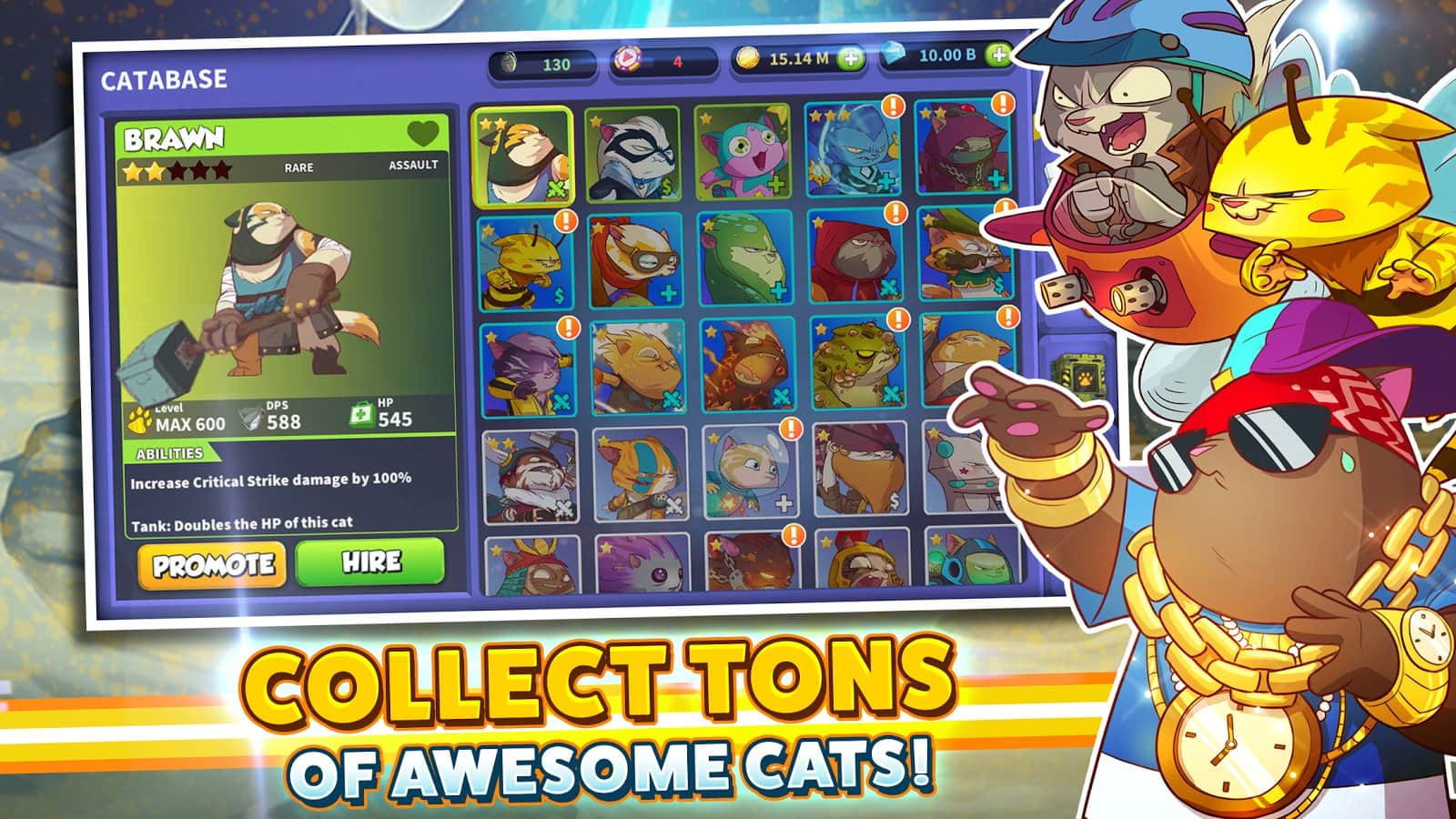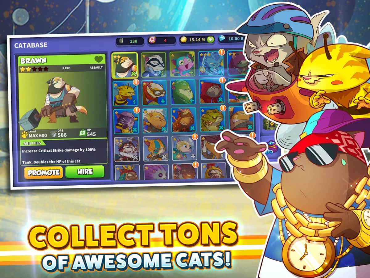 Tap Cats: Idle Warfare – кликер на андроид, где вам предстоит спасать галактику от разрушения. В этой игре вы соберете свою команду котов-воинов и будете передвигаться по всей галактике, сражаясь с членами преступной организации. Как можно быстрее нажимайте на экран своего девайса, чтобы коты наносили удары по врагам и не забывайте повышать уровень своих героев. Выполняйте поставленные миссии и наделяйте своих котов новыми разрушительными умениями и приемами. Пополняйте свою команду новыми котами-воинами которых в игре более 90. Пройдите все уровни и спасите галактику от уничтожения.