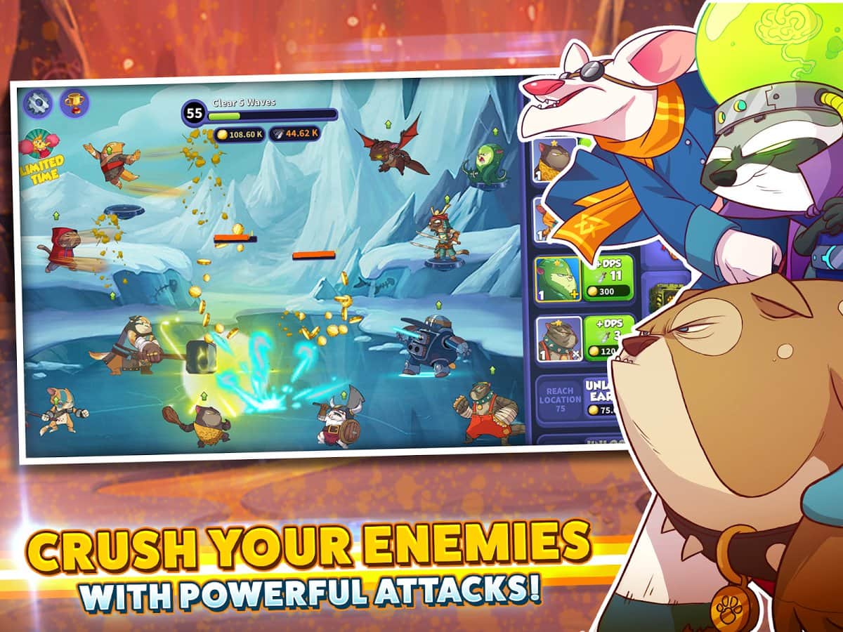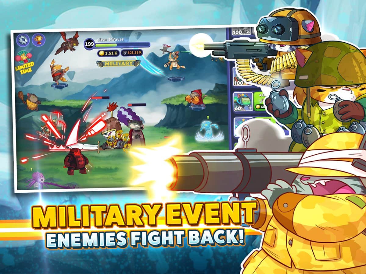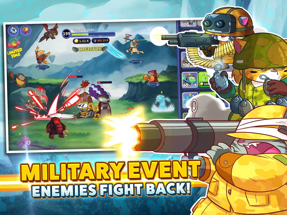 Tap Cats: Idle Warfare – кликер на андроид, где вам предстоит спасать галактику от разрушения. В этой игре вы соберете свою команду котов-воинов и будете передвигаться по всей галактике, сражаясь с членами преступной организации. Как можно быстрее нажимайте на экран своего девайса, чтобы коты наносили удары по врагам и не забывайте повышать уровень своих героев. Выполняйте поставленные миссии и наделяйте своих котов новыми разрушительными умениями и приемами. Пополняйте свою команду новыми котами-воинами которых в игре более 90. Пройдите все уровни и спасите галактику от уничтожения.