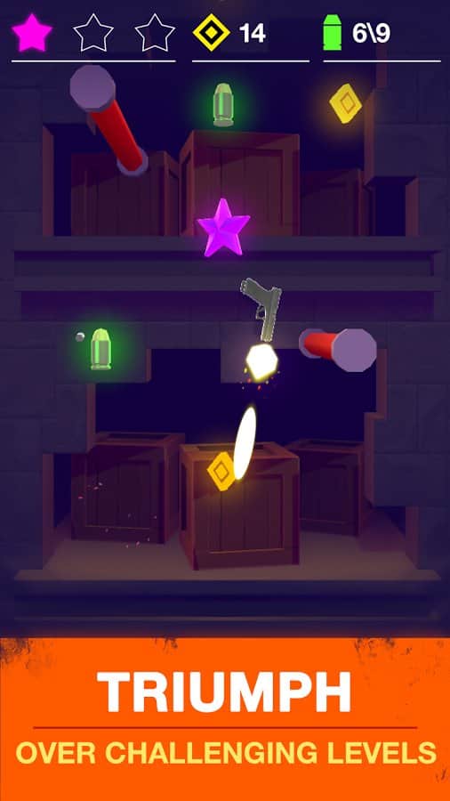 Tap Guns – игра основанная на физике где вам предстоит стрелять из огнестрельного оружия. В этой игре вы будете управлять пистолетом и совершать выстрелы в определенной последовательности для того чтобы поднять свой пистолет как можно выше и по пути собрать все бонусы и усиления. Ваш пистолет и другое оружие будет кувыркаться в воздухе, выстреливая из него, вы будете направлять его вверх для достижения финиша. Старайтесь сделать так, чтобы ваш пистолет не улетел в пропасть и заполучить множество монеток. Открывайте для себя новое оружие и испробуйте его в действии.