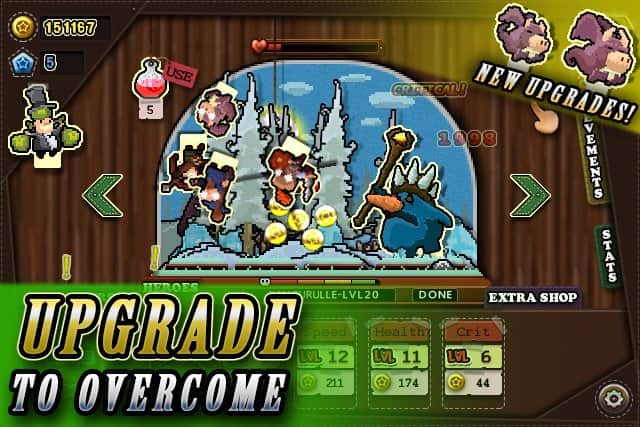 В Tap Heroes вам предстоит отправиться в эпическое путешествие по более чем 10 различным мирам по пути конечно же сражаясь с ордами врагов, которых насчитывается более 70 видов. Игровая механика в полной мере соответствует классике жанра, тапая по экрану тем самым уничтожая врагов всевозможными способами вы развиваете своего героя, переходя на уровень выше и встречаете более сильных врагов и так дальше. Визуально игра выполнена в приятном ретро-стиле.