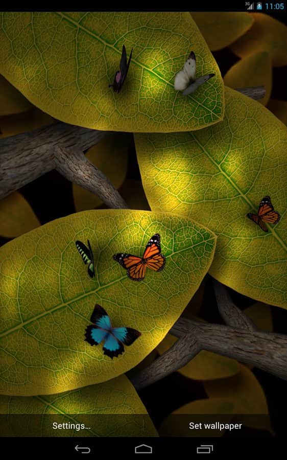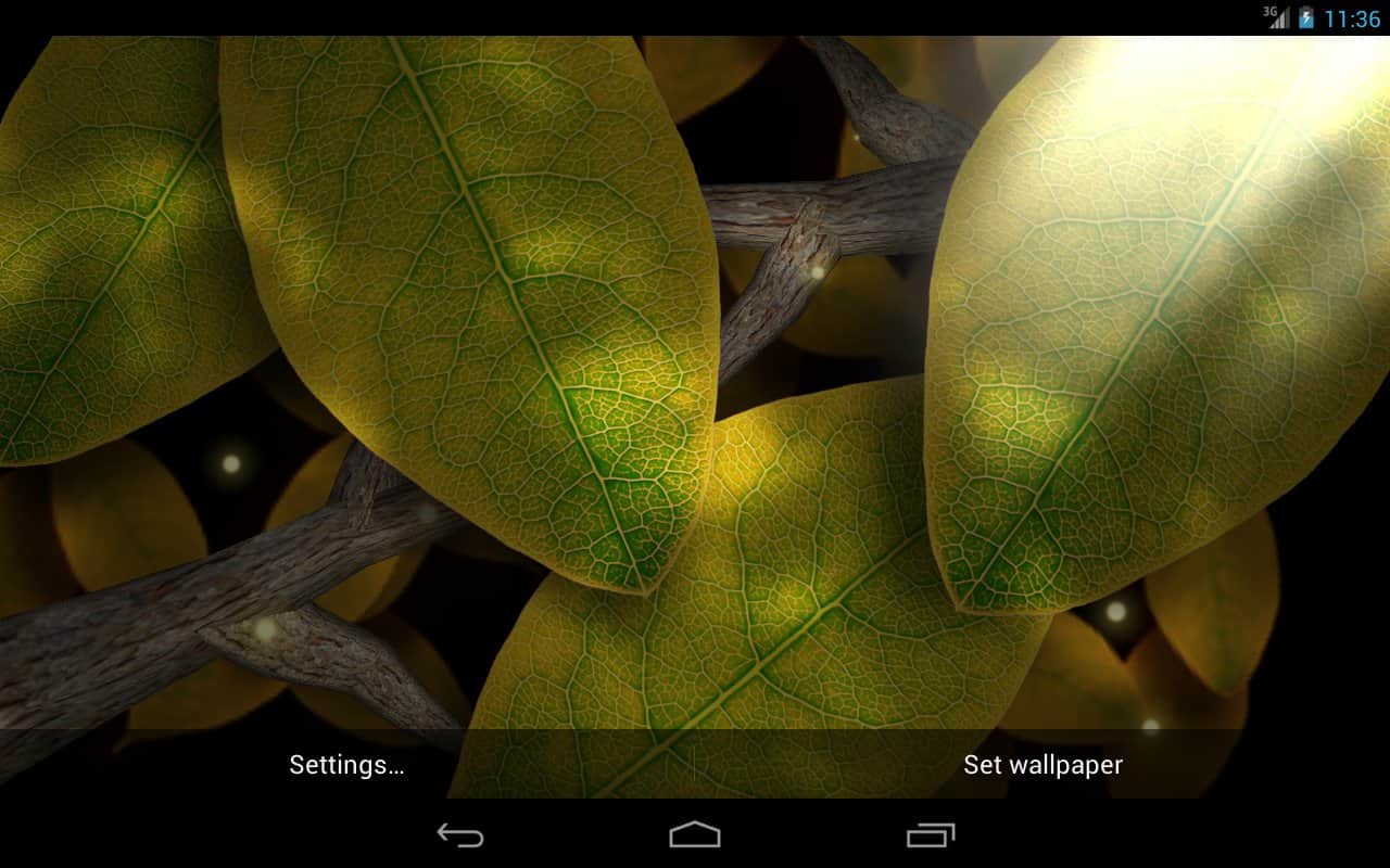 Tap Leaves LWP – сочные 3D живые обои для андроид от разработчика Kision Lab, представляют собой прохладу и спокойствие летнего леса. Там играют в листве солнечные блики и легкий ветерок, яркие бабочки или светлячки в зависимости от времени суток. Красочно, ненавязчиво и красиво.