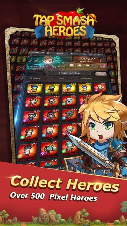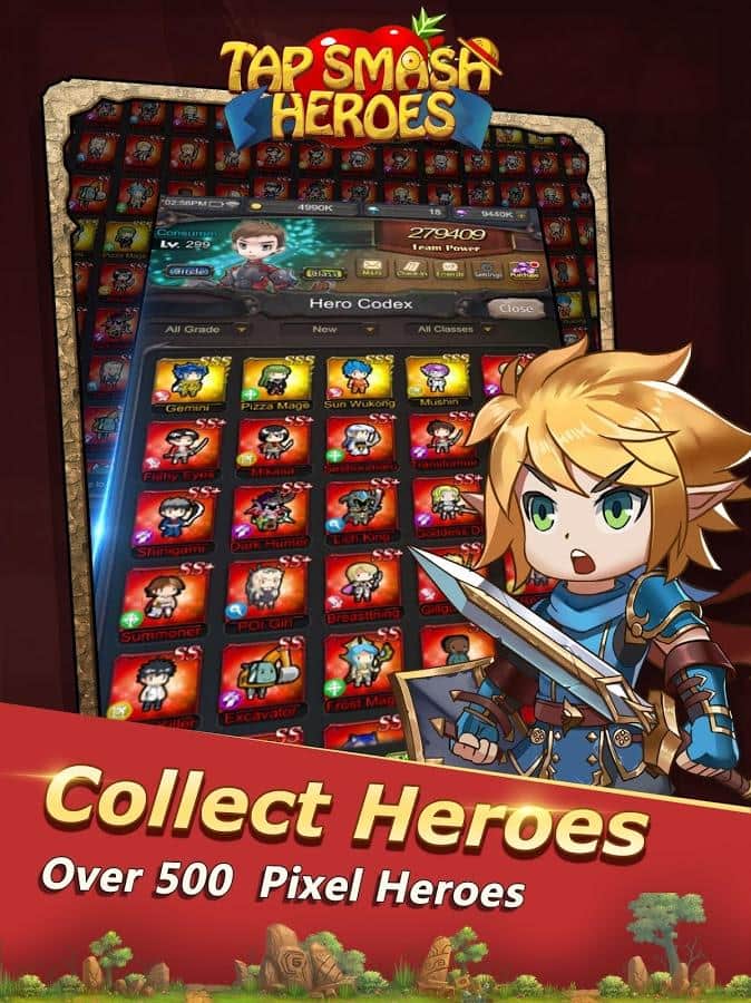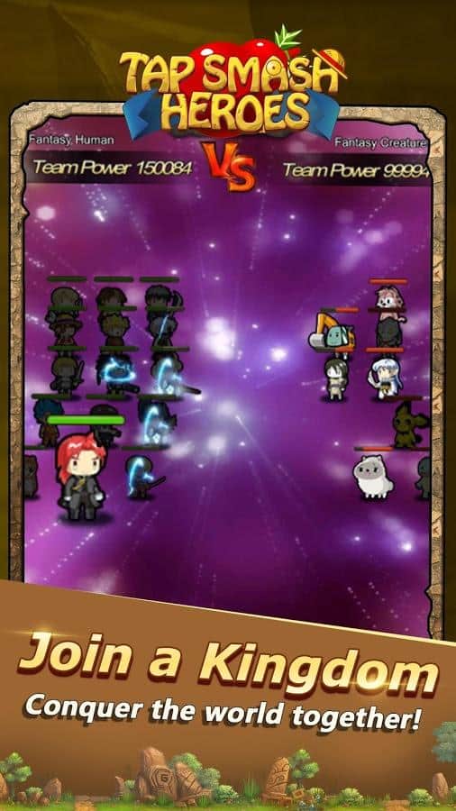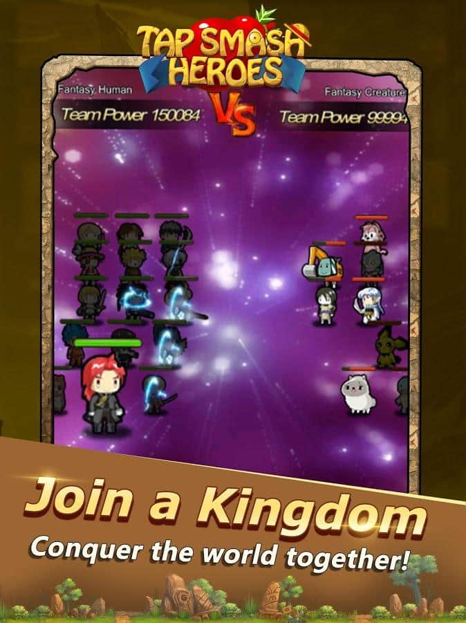 Tap Smash Heroes – сформируйте свою команду героев и исследуйте опасные земли. В этой игре представлено более 500 персонажей разделенных на 5 классов, вашей задачей будет собрать непобедимую команду и сразиться с сильными противниками и мощными боссами. Перемещайтесь по пустошам, тропическим островам, заснеженным пустыням и опасным подземельям и применяйте в деле все умения героев. Разрабатывайте свою тактику ведения боя и объединяйте свои силы с друзьями, вместе борясь с многочисленными врагами. Применяйте в игре многочисленные бонусы и усиления и создавайте непобедимые гильдии.