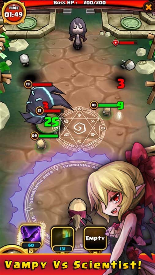 Tap Summoner – стратегия на андроид, где вы будете помогать отважному лорду завоевывать мир. Путешествуйте по различным мирам и странам и покоряйте неприступные замки своих соперников своими уникальными возможностями. Призывайте на помощь своих союзников в виде вампиров и ученых и вместе с ними завоевывайте новые земли. Как можно чаще нажимайте на экран своего телефона и применяйте разрушительные заклинания и мощные атаки. Каждый лорд может призвать до трех уникальных приспешников. Применяйте в бою уникальные навыки каждого героя и открывайте для себя новых союзников и добывайте ценное снаряжение.