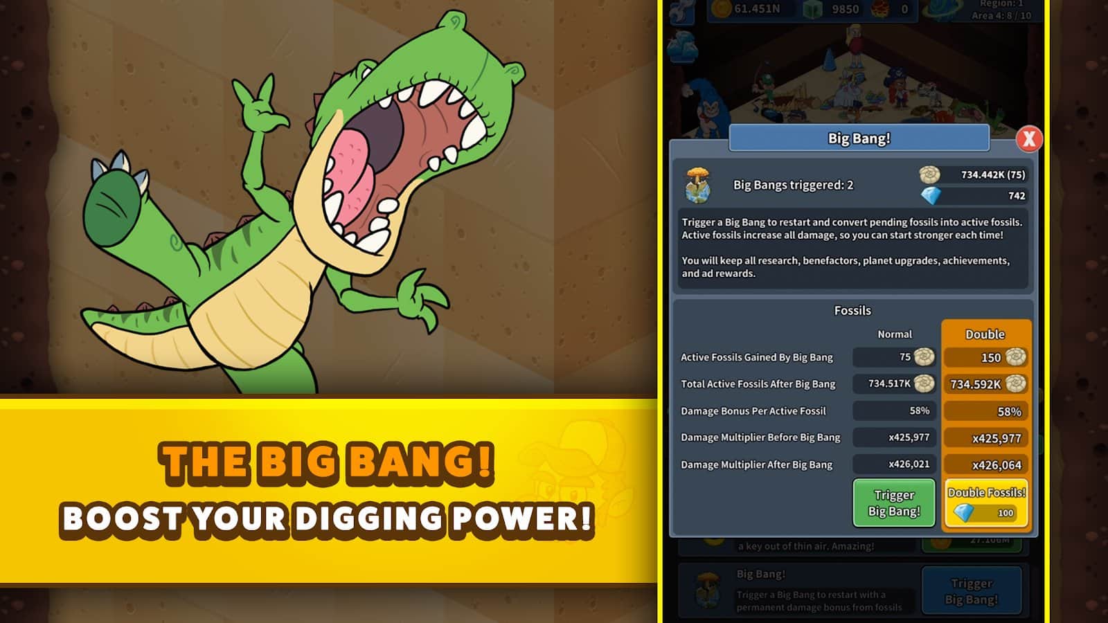 Вы когда-нибудь пытались докопать до ядра планеты с помощью сумасшедших копателей? Tap Tap Dig 2: Idle Mine Sim - игра в режиме ожидания, которая позволит вам взять под контроль персонажа и добыть ядро нескольких планет. Собирайте алмазы, деньги, предметы для модернизации вашего персонажа. Собирайте Ядра и запустите Большой взрыв, чтобы перезарядить своего копателя. Потратьте бонусы, чтобы нанять помощников. Больше бонусов и предметов дадут вам нереальное преимущество и сделают вашу игру намного увлекательнее.
