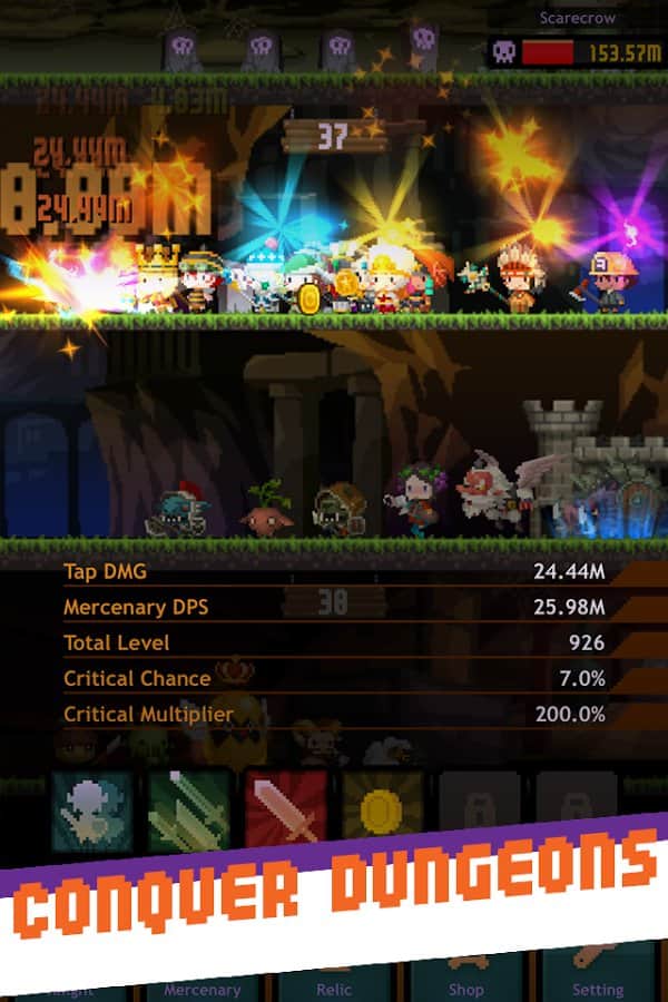 Tap! Tap! Faraway Kingdom – проведите отважного рыцаря по многочисленным уровням, и сразитесь с врагами и монстрами. Дракон украл старинную реликвию королевства и чтобы ее вернуть, принцесса посылает своего верного рыцаря в опасный поход сражаться с врагами. Ведите рыцаря и его отряд по различным уровням заполненными монстрами и драконами и отчаянно сражайтесь с врагами. Для того чтобы нанести удар врагу кликайте по экрану своего девайса и атакуйте противника. Нанимайте в свой отряд воинов, которые будут сражаться на вашей стороне. Примеряйте для своего героя различное снаряжение, которое защитит его в бою.