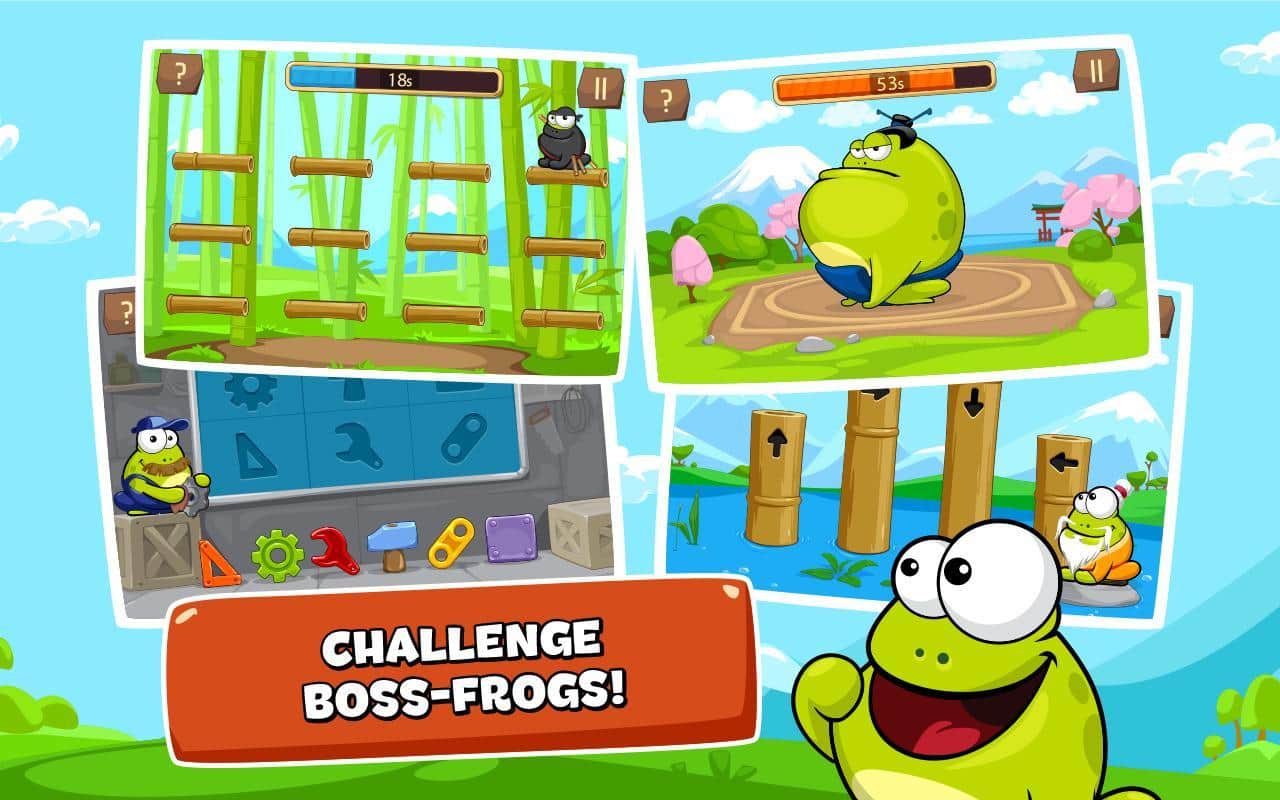Студия разработчик Playmous хорошо знакома владельцам Андроид устройств в первую очередь таким играм как God of Light, Gemcrafter: Puzzle Journey и конечно же серия тач-аркад Tap the Frog. И вот Playmous порадовала нас третьей частью лягушачьей аркады, игра в свою очередь получила название Tap the Frog Faster . В целом третью часть можно охарактеризовать как продолжение -дополнение, все та же привычная графика, та же игровая механика, то же исполнение, и тот же полюбившийся персонаж. А к наиболее заметным изменениям можно отнести огромное количество, совершенно новых уровней, на этот раз выполненных в виде мини-игр, введение жабо-босов, появление бесконечного режима, новые способности и достижения. Другими словами если вам понравилась хотя бы одна из предыдущих частей, то Tap the Frog Faster без сомнения вас порадует, если же вы не играли ни в одну из частей, что же самое время начинать.