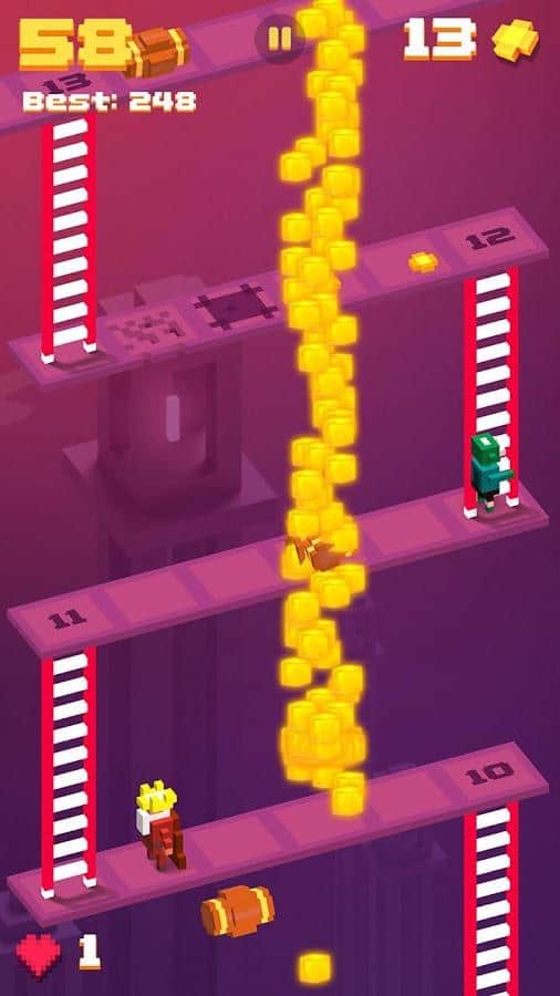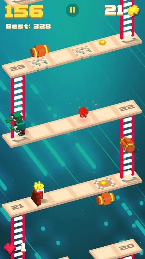 Tap the Tower – управляйте героем который хочет подняться на самую вершину башни по лестницам. Сложность этой игры будет заключатся в том, что на героя сверху будут сыпаться бочки, потоки огня и воды, а также на его пути встанут многочисленные враги и зомби. Помогите герою подняться как можно выше и обойти все преграды у себя на пути. Положитесь на свою внимательность и отличную реакцию и выбирайте нужный момент для движения, чтобы не столкнуться с падающими объектами. Поднимайтесь как можно выше и открывайте для себя новых героев, которые разнообразят вашу игру. Применяйте также полезные усиления и бонусы и поднимайтесь на самый верх таблицы лидеров.