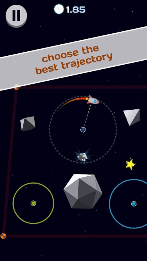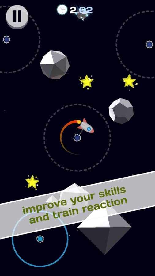 Taptoletgo – увлекательная игра на андроид, где вы будете контролировать полет ракеты в космическом пространстве. В этой игре ваша ракета перемещается от одной планеты к другой, и вашей задачей будет выбирать точную траекторию полета так чтобы избежать столкновения с препятствия и астероидами. Перемещаясь в комическом пространстве, ваша ракета будет двигаться по орбите планеты в нужный момент, нажимайте на экран телефона и запускайте ракету в полет. По пути собирайте ценную руду и звезды, которые вы сможете потратить на покупку новой ракеты или улучшений для нее. Впереди вас ждут многочисленные уровни и отличные бонусы, например замедление ракеты.