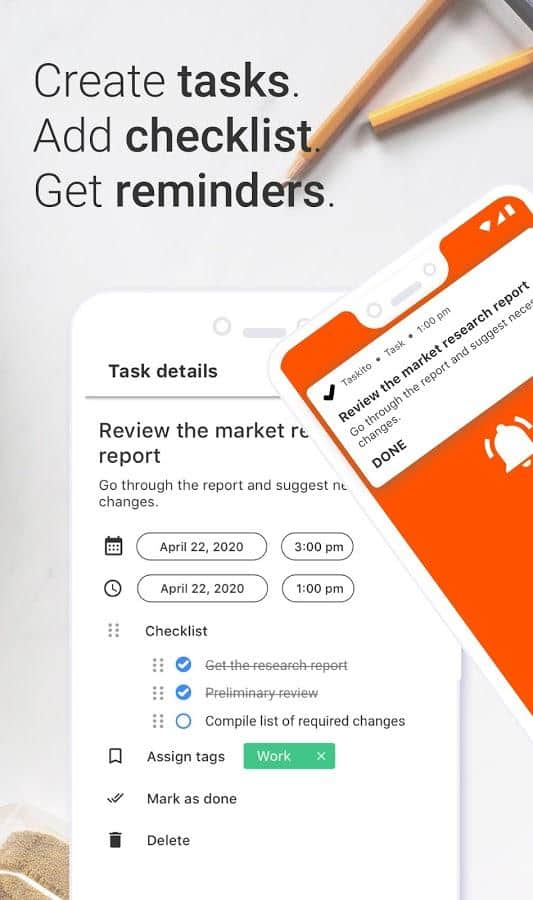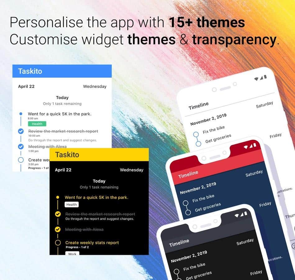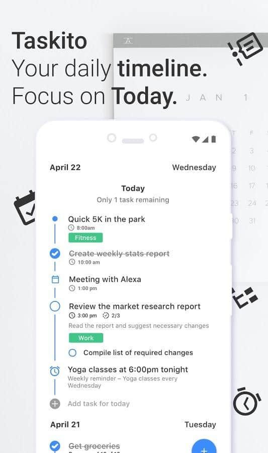 Начните свою жизнь с чистого листа и садитесь за планирование своего драгоценного времени вместе с приложением Taskito. Планирование - залог успешного саморазвития, ведь запомнить все дела на день и про что-то не забыть - почти невозможно. Создавайте разные списки: покупки в магазине, дела по работе, мелкие задачи и большие цели! Создать то создали, еще главное не закинуть это дело. Поэтому ставьте напоминания, отслеживайте процесс, изменяйте внешний вид приложения с помощью настраиваемых тем. В каждой задаче создавайте подзадачи, ставьте время желаемого выполнения, дату на которой будет стоять дело.