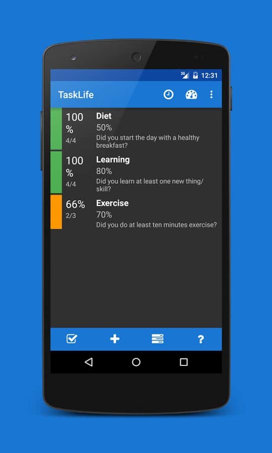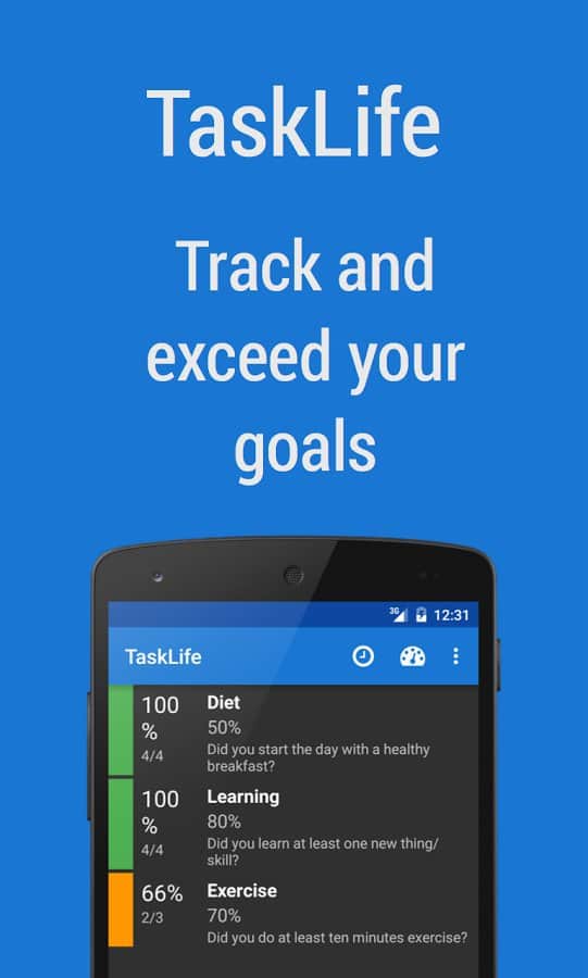TaskLife Performance Tracker - Вы сможете создать свой дневной или недельный график, и не забыть его выполнить. Просто создайте напоминание о том, что вы хотите сходить в спортзал на тренировку 2 раза в неделю, или о режиме соблюдения диеты, и отмечайте то, что вы сделали. Таким образом, вы сможете легче привыкнуть к вашему желаемому распорядку дня, и не сделав что-то из запланированного сегодня, вы не забудете это сделать завтра. Таким же образом вам будет легче следить за тем что вы уже сделали, и добиваться успеха не теряя времени.
