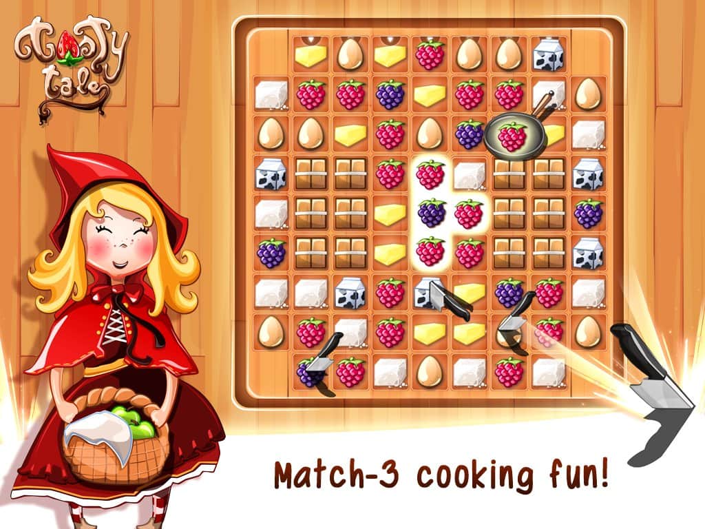 Tasty Tale - the cooking game – игра головоломка из жанра три в ряд, где вам предстоит отправиться в сказочную страну, где вы встретитесь с известными героями сказок. Вашей задачей в этой игре будет составлять различные ингредиенты в ряды и тем самым готовить вкусные блюда. Накормите своими блюдами таких героев как: Красная Шапочка, трех поросят, Пиноккио, гномов и спящую красавицу. Составляйте ингредиенты в ряды и проходите различные уровни, применяя свое логическое мышление, чтобы избежать ловушек и препятствий которые смогут испортить ваши блюда. Если герои останутся довольны вашей стряпней, и таким образом вы подниметесь на самый верх таблицы лидеров.