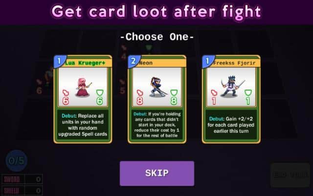 Бросайте карты и выигрывайте в боях вместе с Tavern Rumble! Дается много уровней с разными сложными врагами, убить которых можно картами в ваших руках. На каждой карте нарисован герой, указано его имя, мощность и защита. Вам выбирать что лучше - больше защиты, но мало урона или больше урона, но меньше защиты. Во время боя ставить атакующих возможно только на свое поле, количество оставшейся колоды указано вверху. Разблокируйте все карты, улучшайте их навыки и удачно проходите сражения на своем пути!