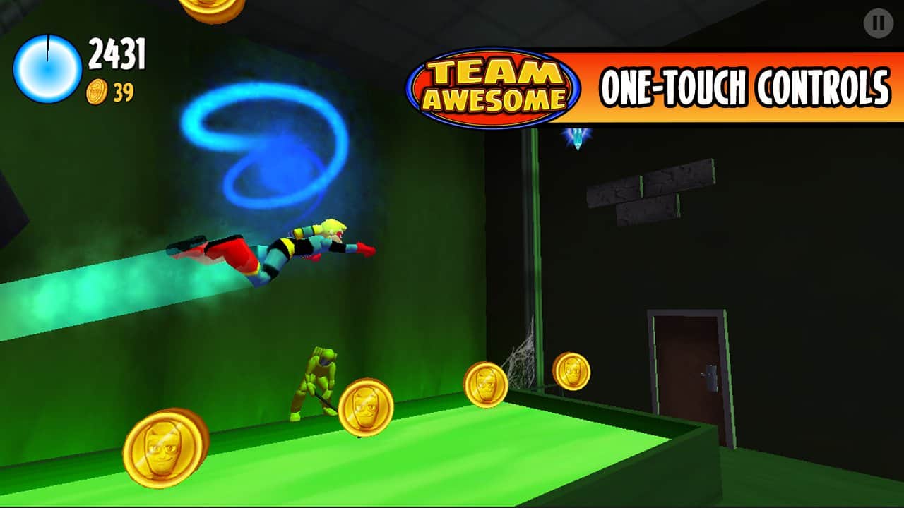 Team Awesome - это весёлая аркада про приключения супер героев. Они были всего лишь простыми людьми, застрявшими на бесперспективной работе. Но всё изменилось когда на землю упал метеорит, и превратил их в супер героев. Собирайте монеты встречайтесь лицом к лицу с роботами, инопланетянами и другими опасностями.