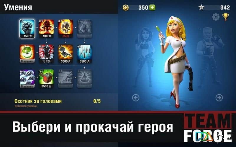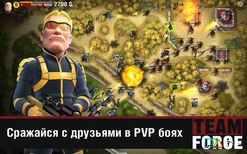 Team Force – если хотите испытать себя на прочность, тогда вам безусловно необходимо поиграть в эту игру, которая содержит захватывающие баталии в реальном времени. Собирайте свою элитную команду бойцов и вперёд на поле боя доказывать всем, что у вас ещё есть порох в пороховницах. Выбирайте своего героя и прокачивайте его, стройте тактические схемы, захватывайте вражеские сооружения и бросайтесь в бой для полного и безоговорочного уничтожения своего врага. В игре доступны специальные усиления, Которые непременно помогут вам в бою, используйте их с умом и они не раз помогут перевесить чашу на свою сторону.