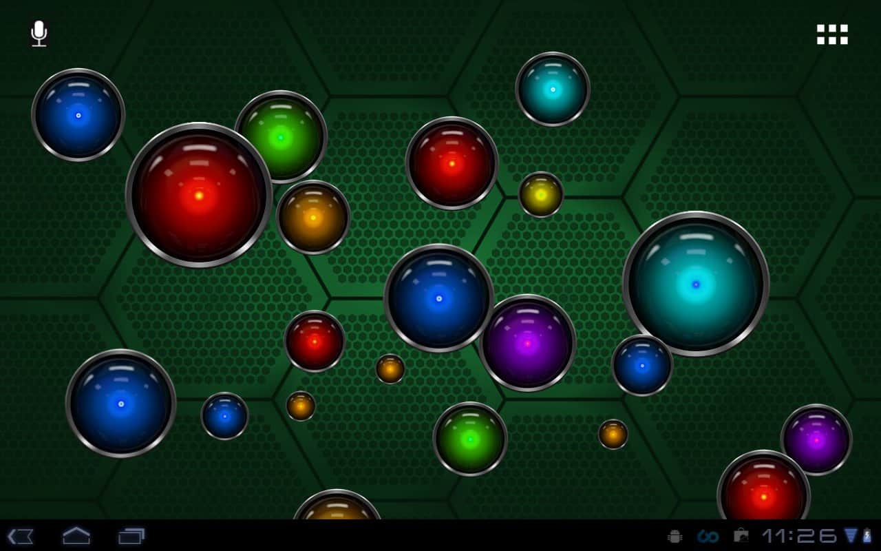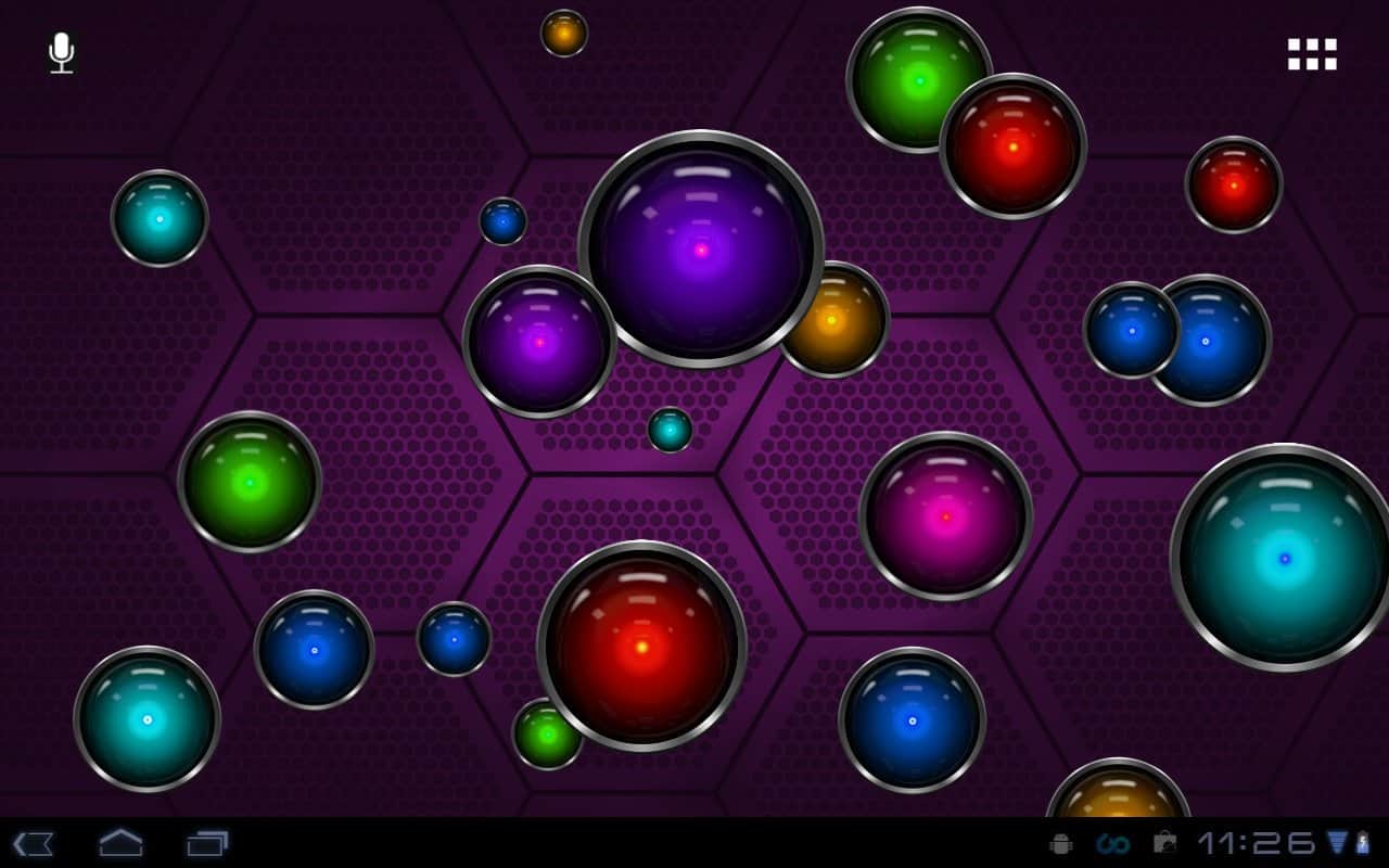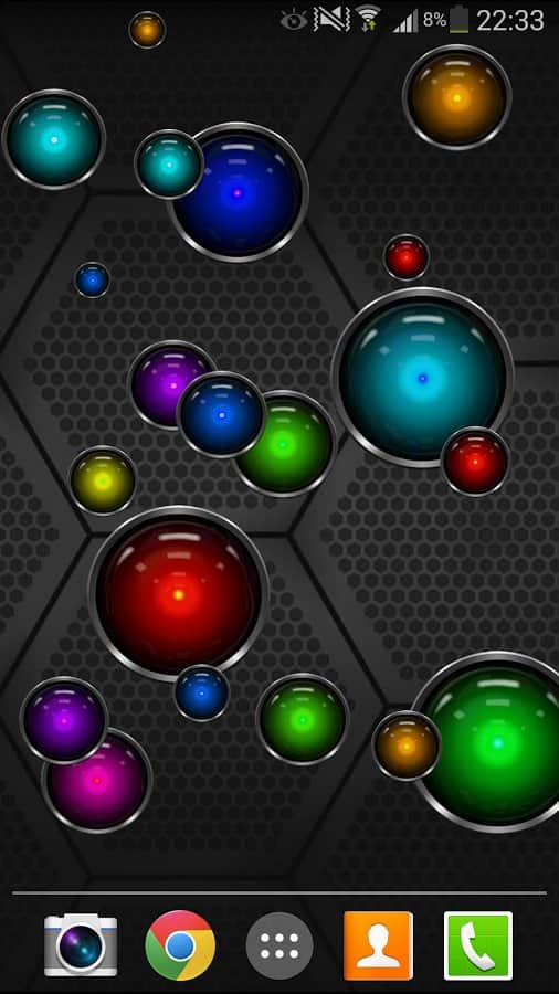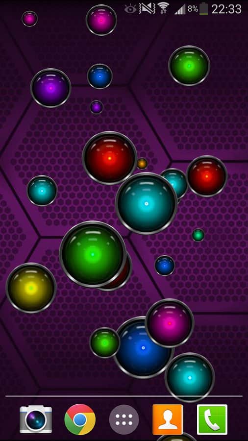 Tech Bubble Live Wallpaper – яркие живые обои на андроид с большим количеством разноцветных шариков, которые будут путешествовать по экрану вашего смартфона. Выберете один из пяти фонов, настройте количество шариков-пузырей на экране и играйте в мини-игру лопая их. Скачиваем, устанавливаем, наслаждаемся!