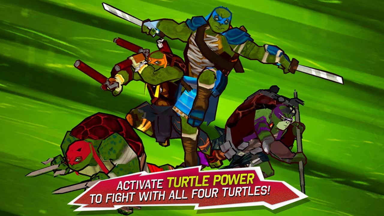 Жаль, жаль, очень мало игр по этому фильму, а точнее их даже нет, только эта игра на телефонах, хотя если брать Out of the shadow, то получается 2 игры (и то, это был закос под 2012, но с нотками реализма). Хотя совместить 3д графику и 2д стилистику - так себе была идея, но графика мне зашла. Весь геймплей завязан на свайп вправо, свайп влево и тд (скажите разработчикам таких игр, что джостик не сломает производительность и будет неплохим добавлением в игру), но разбавляют уныние - приемы, которые со временем можно найти на локациях и экипировать их на черепах. Помимо приемов также есть ульта и блок. Ульта, в зависимости от того сколько черепах готово, запускает QTE и каждая черепаха имеет свою анимацию ульты. Блок вроде бы неплохое решение, спасает от ударов, но со временем он работает через раз и бывает подставляет тебя под удар. Ну и собственно управление.. Вначале, когда мало врагов, управление добротное, но как только враги начинают заполнять карту начинается неразбериха: персонаж иногда не реагирует на команды, нажал вверх, а он начинает бить снизу (разницы как бы нет, но неприятно), бывает черепаху контузит и начинает метаться в разные стороны, блок бывает не сразу срабатывает. Но так то играется неплохо, есть возможность выбрать оружие персонажу, режим выживания и собственные катсцены (вопрос качества остается открытым) вместе с озвучкой, враги не одна моделька, а меняются с переходом на новый уровень как и фоны и пытаются вроде как дать игроку разнообразие, но вот под конец становится невыносимо: враги становятся толще, бывают такие враги, которые постоянно пытаются бежать напролом (и если враг вблизи среагировать на блок будет тяжело). Короче, игра неплоха, но если не пытаться пройти ее сразу, как бы играть в нее когда станет скучно или же есть время (иначе станет невыносимо от ее однообразия).