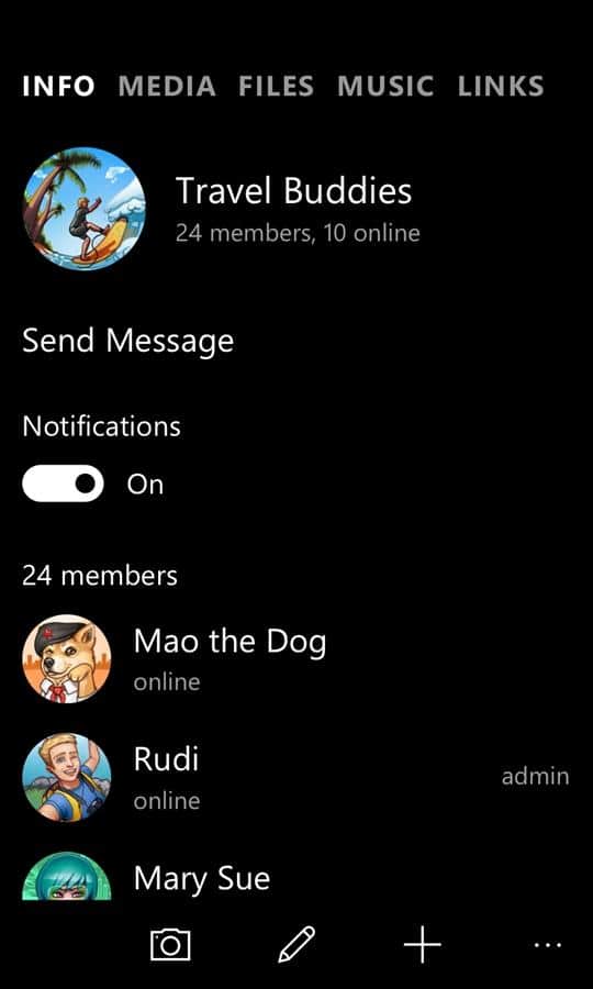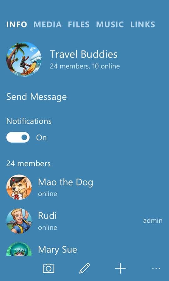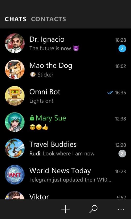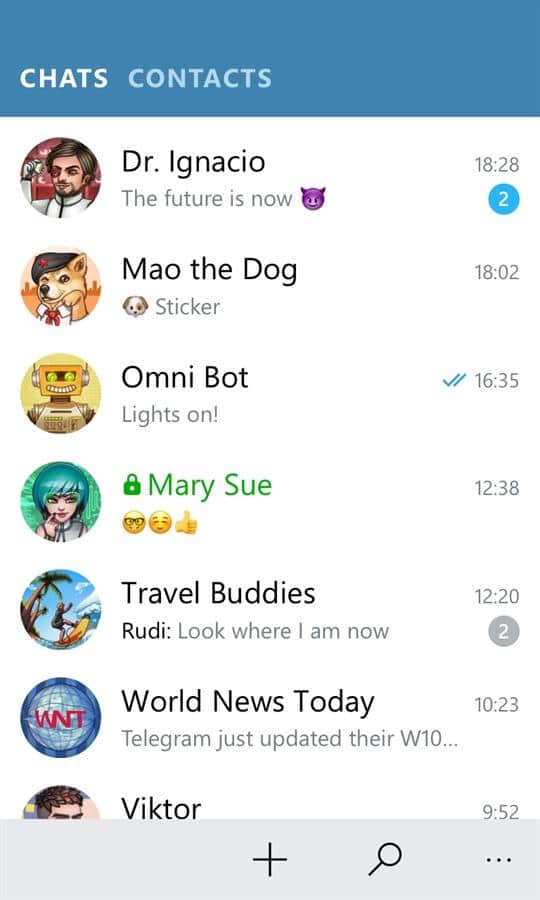 Telegram Messenger – популярная программа для Windows Phone, с помощью которой вы сможете общаться со своими друзьями, коллегами и близкими вам людьми со всего мира. Устанавливайте общий чат с более 200 человек и оставайтесь на связи в любое время и месте. Вы сможете не только отсылать сообщения, но и отправлять видео файлы до 1Гб или фотографии. Все ваши отправленные сообщения будут находиться в специальном облаке, к которым у вас будет неограниченный доступ. Для тех кто хочет скрыть свои сообщения доступны «секретные чаты» где сообщения сможет прочитать только указанный получатель после чего они удаляются. Воспользуйтесь этим приложением и оцените его удобство и уникальность.