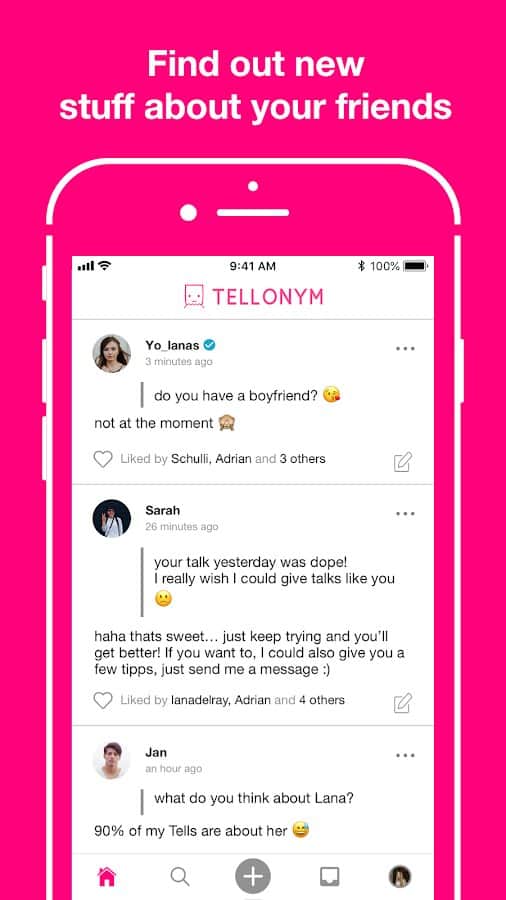 При помощи программы Tellonym: Честные Вопросы и Мнения можно не только выражать собственное, но и узнавать мнения на любой волнующий вопрос: честно и в режиме реального времени. просматривайте ежедневную ленту вопросов и обсуждений, вступайте в дискуссии и узнавайте ответы своих друзей. О них вы также можете узнать все: интересы, мысли и высказывания. Для начала работы необходимо поделиться ссылкой на свой профиль в соцсети, чтобы иметь возможность получать сообщения. В аккаунте вы можете создавать вопросы и делать их репост, а также присоединиться к актуальной беседе, знакомиться с новыми людьми.