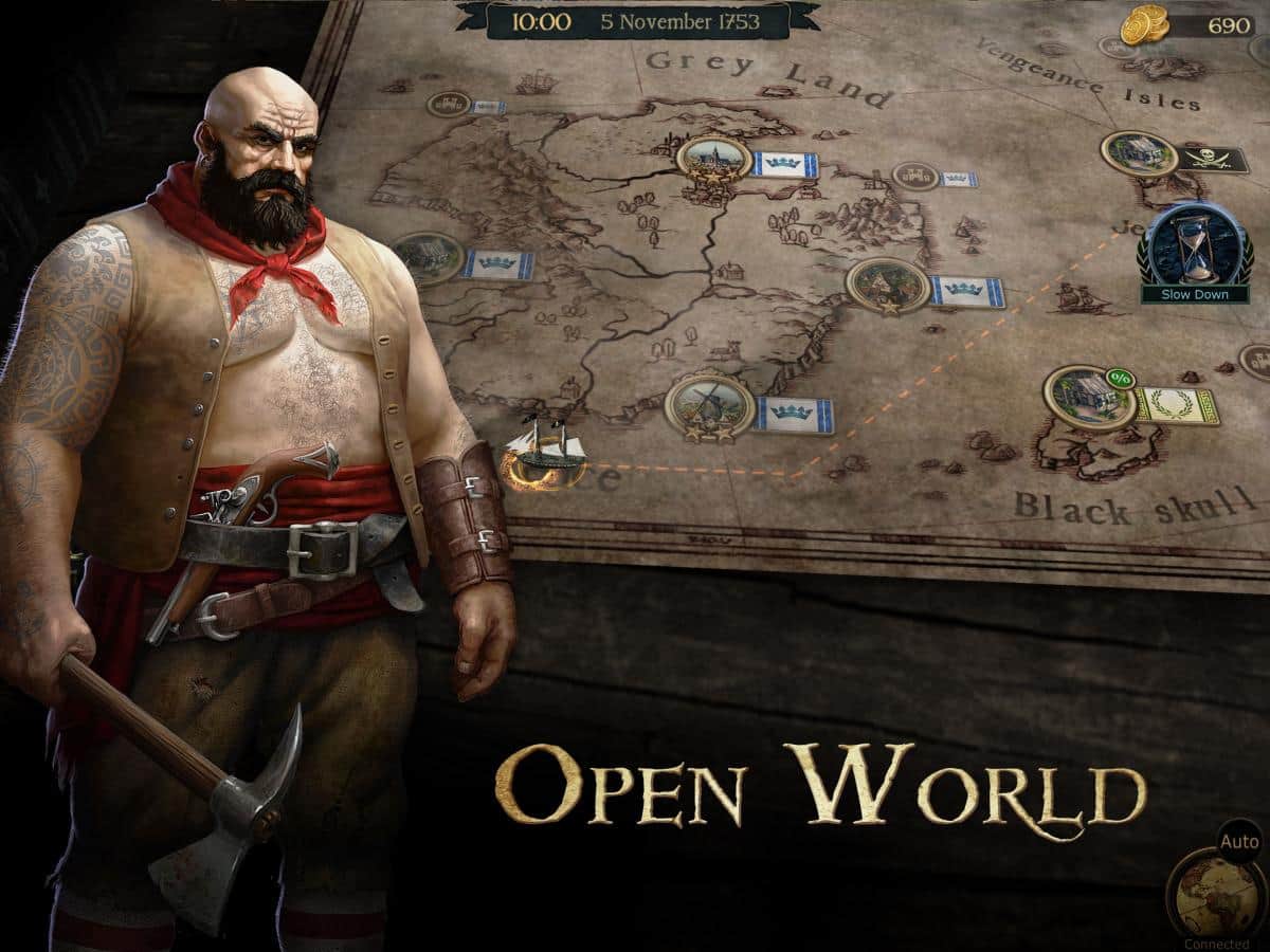 Tempest: Pirate Action RPG – игра в которой вы станете пиратом огромного корабля и будете бороздить бескрайние просторы Карибского моря. Возьмите под свое управление быстроходный пиратский корабль и проведите его через эпические сражения и морские баталии с врагами и морскими чудовищами. Соберите свою неповторимую команду, где каждый матрос будет выполнять свои обязанности. Стреляйте по врагам, портам и чудовищам из пушек, мортиров и огнестрельного оружия и получайте очки. Выполняйте увлекательные квесты и задания и получайте в качестве награды мощные артефакты, которые откроют вам доступ к новому оружию и магическим кристаллам.