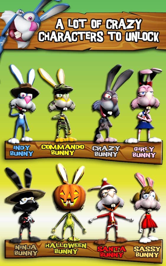 Temple Bunny Run - игра на андроид, в которой вы будете помогать маленькому белому кролику убегать от злого кролика. По пути вас будут подстерегать большое количество препятствий и врагов таких как львы, бегемоты, зебры и многие другие животные. Используй свой телефон чтобы помочь кролику, проводи пальцем влево и вправо чтобы избегать препятствия или вверх, вниз чтобы кролик прыгал. Собирай монетки по пути и приобретай на них нужные способности или других персонажей.