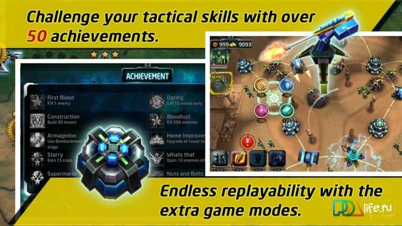 Terran Defence - новый взгляд на жанр оборона башен, разработчики этой игры сохранили все характерные черты присущие классическим Tower defense, но при этом внесли в геймплей много новых элементов. Помимо привычного строительства башен, коих в игре более 20 видов, у вас будет возможность использования уникальных героев, которых в свою очередь можно развивать и улучшать, вам будут доступны более 30 различных умений и навыков. Поверьте все это потребуется ведь вам будет противостоять армия из 50 различных видов монстров во главе с непобедимыми боссами. Проходя миссию за миссией, уровень за уровнем, а продолжительность геймплея более 20 часов, вы сможете получить более 50 различных достижений. Кроме сингл компании в игре присутствует полноценный мультиплеерный режим, в котором вы сможете посоревноваться со своими друзьями. Теперь немного о сюжете, как и во всех играх этого жанра он носит довольно поверхностный характер и все что можно сказать это то что вам предстоит возглавить армию землян борющихся против инопланетных чудовищ.