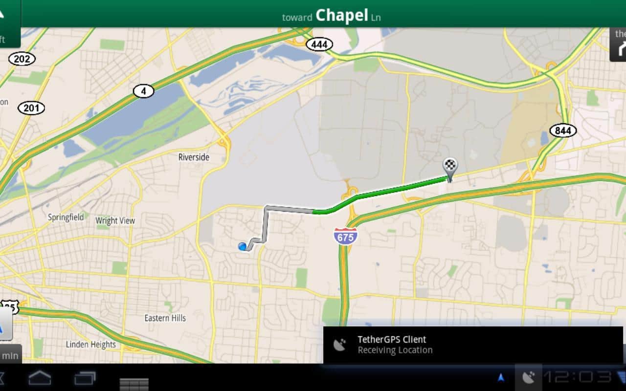 Запустите приложение на обоих устройствах. На телефоне нужно нажать "Start Server", а на планшете "Start Client". Попробовать запустить навигатор или другую программу работающую с GPS на планшете.