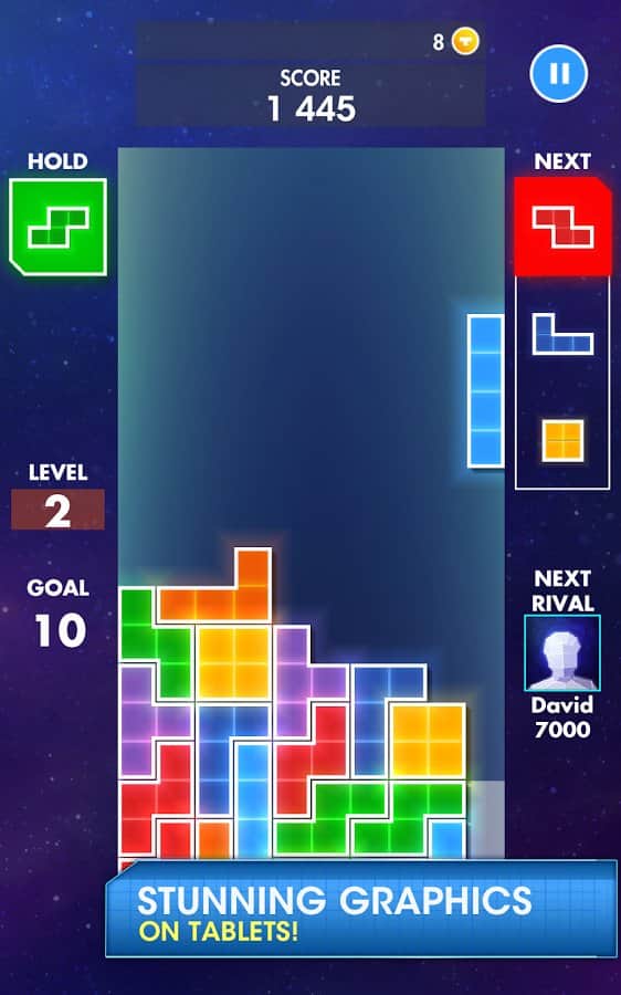 Бесит реклама. Чтобы открыть классическую музыку из тетриса, нужно или много играть, или хорошо играть. Придраться не к чему, игра-то бесплатная. Классический режим никуда не делся, 16 уровней сложности. Сложность постепенно возрастает во время игры, после 16-го до бесконечности. Есть новые режимы, но кому они нужны? Есть новое управление, при котором ты нажимаешь на то место, в котором должна упасть фигура, но с ним не легче, да здравствует классика. Начинаю обычно с 5-го уровня сложности, мой рекорд 300 000 очков. Взломать игру не пытайтесь, это вам не Real Racing 3