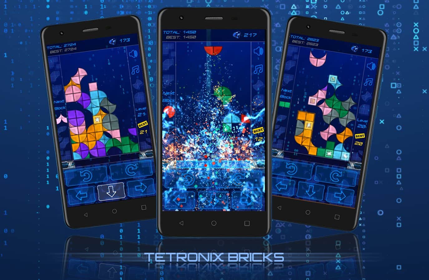 Tetronix Bricks – новая увлекательная игра-головоломка на андроид, где вы будете собирать блоки из различных элементов. В игре Тетроникс вам предстоит соединять выпуклые и вогнутые элементы в квадрат и таким образом не допускать пока блоки достигнут вершины. Составляйте непрерывную последовательность из семи квадратов одного цвета по вертикали или горизонтали и разрушайте их. Уничтожайте особые клетки чтобы вызвать серию взрывов и получайте бонусы и усиления. Сложность игры с каждым разом будет увеличиваться, добавляя новые цвета и формы, что сделает игру интересной как для начинающих, так и для опытных игроков.