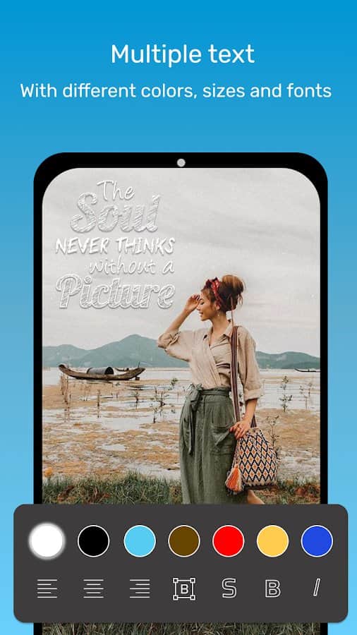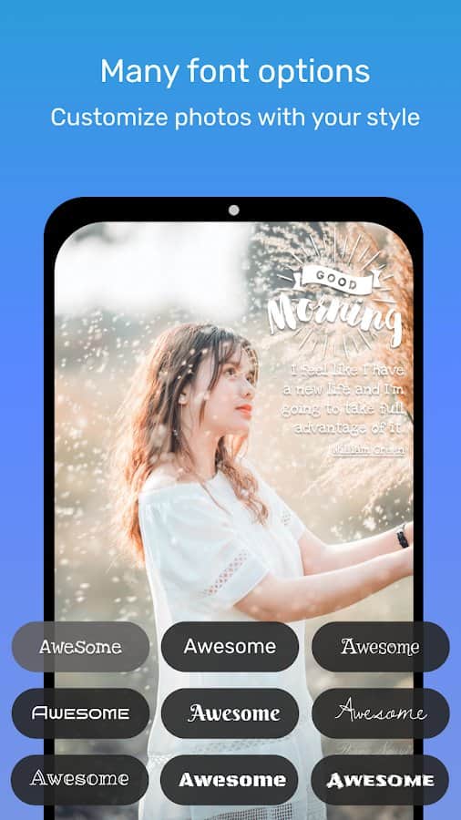 Text On Photo - Добавленный текст может не только изменить общую составляющую всей фотографии, но и добавить в нее изюминку, которая запомнится каждому. Загрузите необходимое изображение для изменения, настройте границы и размеры, подкорректируйте отображение фото и добавьте множество новых деталей: наклейки, текст с различными цветовыми гаммами, шрифтами и другими деталями. После полного изменения общей картины вы сможете сохранить готовый снимок в самом высоком качестве и даже поделиться ним в социальных сетях.