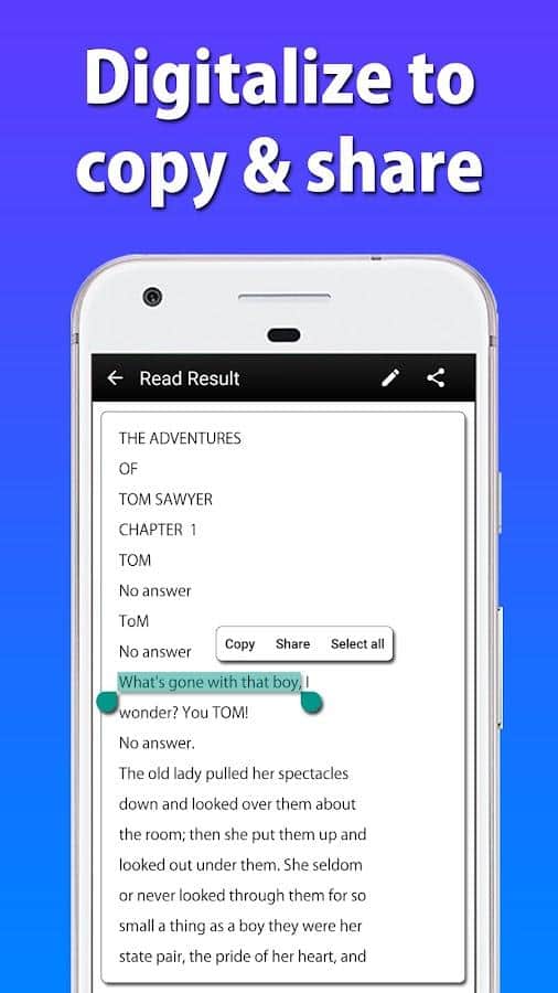 Text Scanner [OCR] - Сканировать любой текст с высокой скоростью вам поможет приложение Text Scanner. Вы сможете легко преобразовывать картинку в текст, вводить домен сайта или номер телефона в одно касание на экран. Программа в автоматическом режиме способна распознавать символы с любого изображения, создавать заметку или примечание без использования клавиатуры, считывать информацию на любом из 50 доступных языков. Вы легко сможете отсканировать даже рукописный текст, записать телефонный разговор, скопировать данные и сохранить в памяти своего устройства. Вы оцените удобство управления и внушительный набор функций.