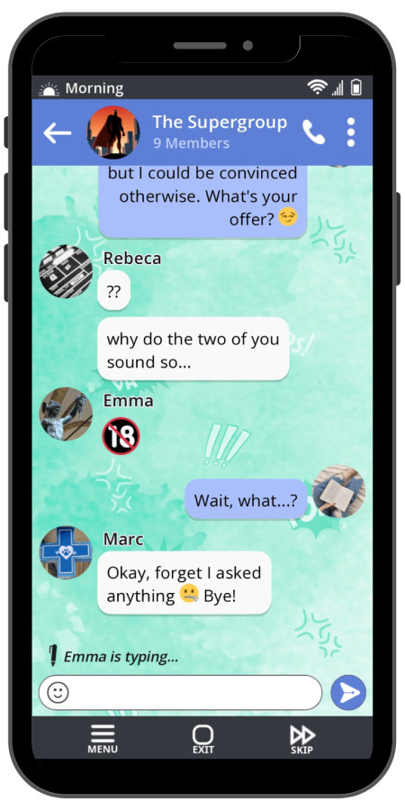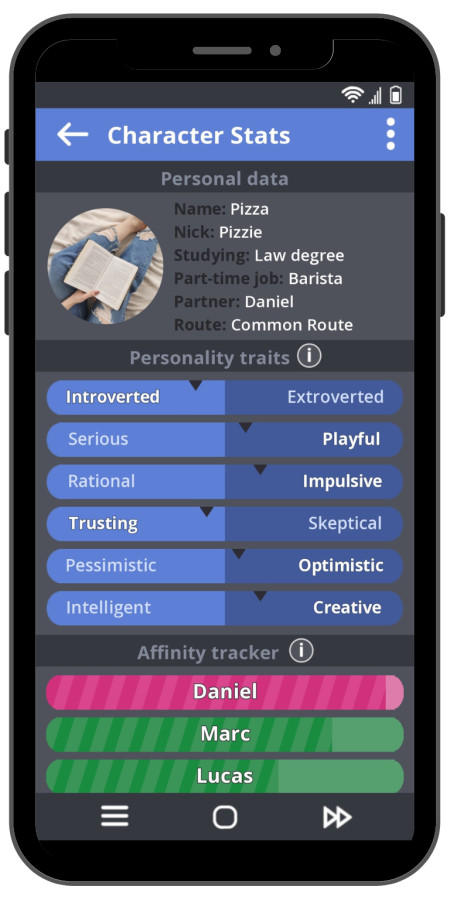 Text Your Life — это интерактивный симулятор мессенджера, в котором вы играете за студентку юридического факультета, балансирующую между учёбой, подработкой, друзьями, парнем на расстоянии... и внезапным поцелуем на вечеринке, который переворачивает всё с ног на голову. Вас ждут забавные диалоги, детективные интриги в духе подруг-сыщиц, неловкие любовные ситуации и множество вариантов развития событий, полностью зависящих от ваших решений.